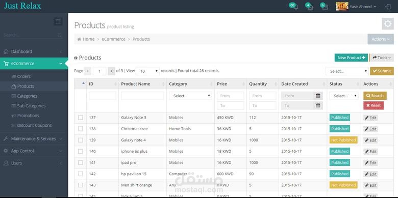لوحة تحكم ويب لمتجر (تطبيق موبايل)
