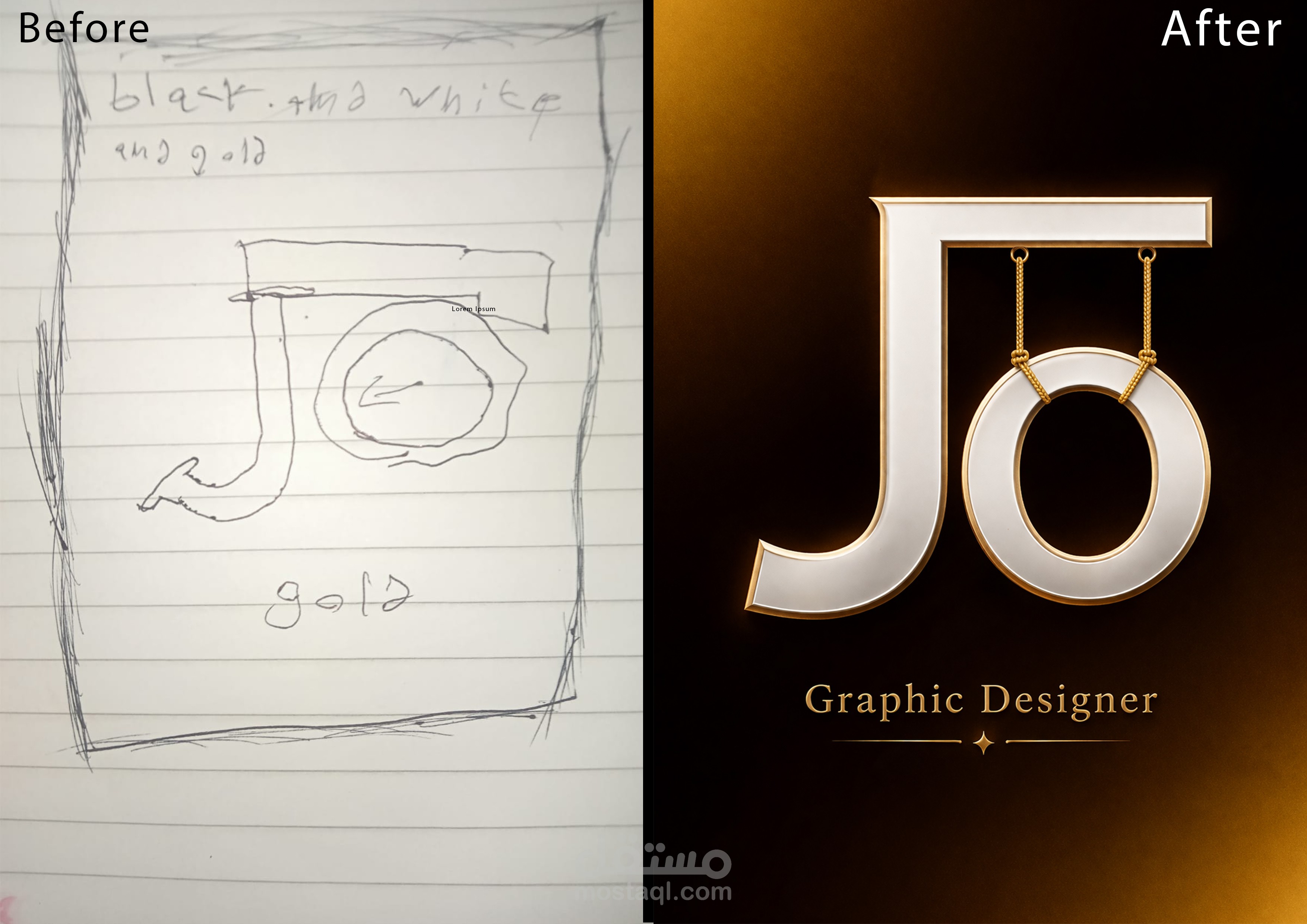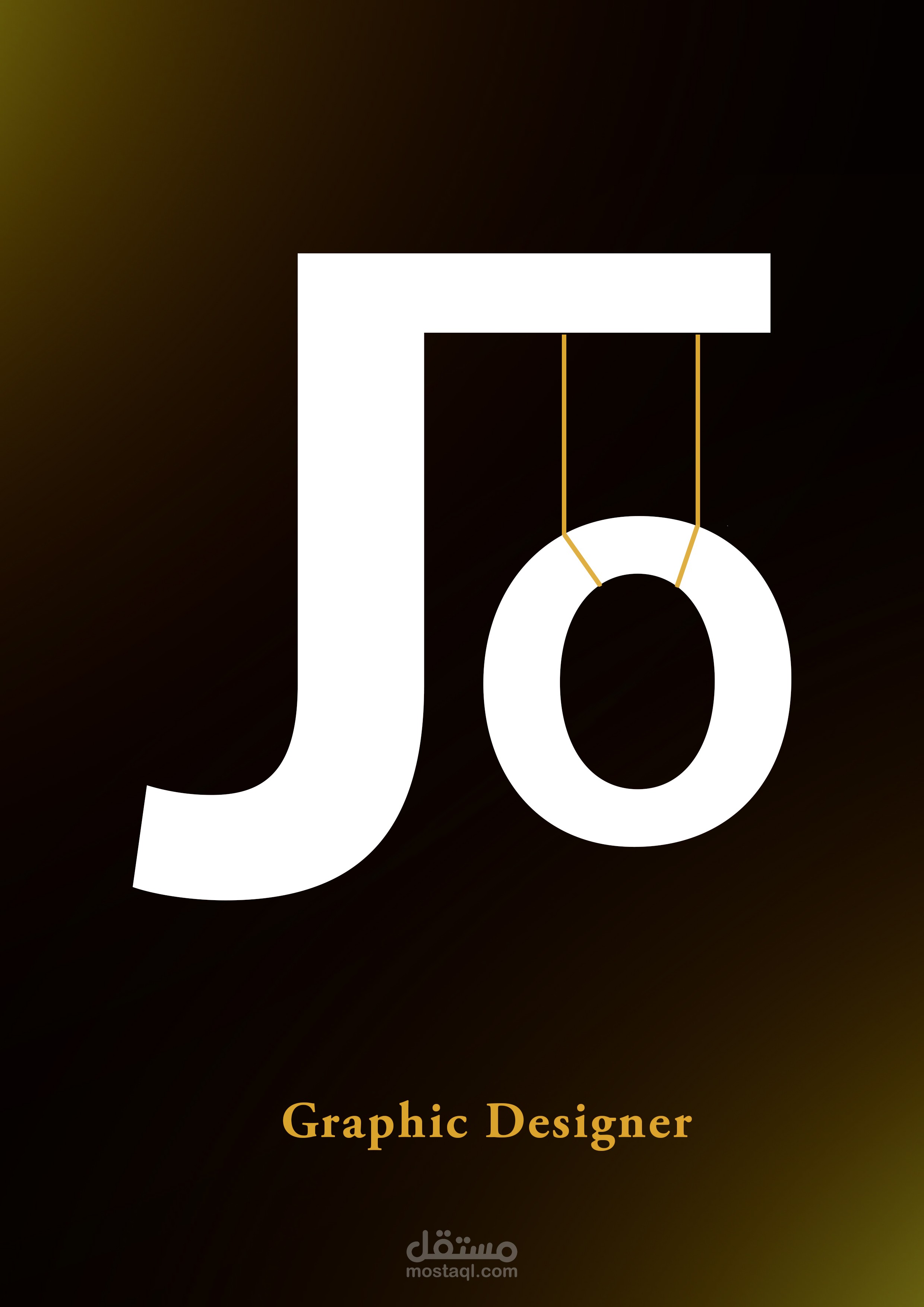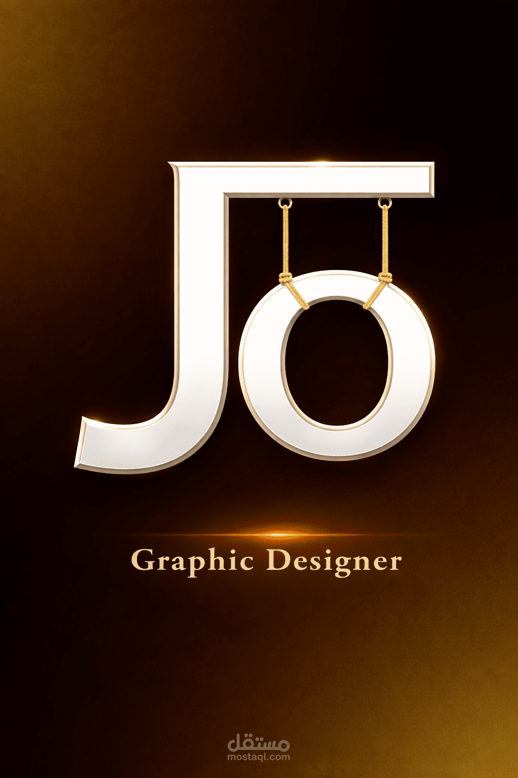 تصميم لوجو احترافي يعكس هوية عصرية بلمسة فخامة، يعتمد على دمج الحرفين J و O بأسلوب بسيط وجذاب. يتميز التصميم بفكرة إبداعية حيث يظهر حرف O وكأنه مُعلّق بحبال ذهبية، مما يضيف إحساس بالحركة والتميّز ويجذب الانتباه.