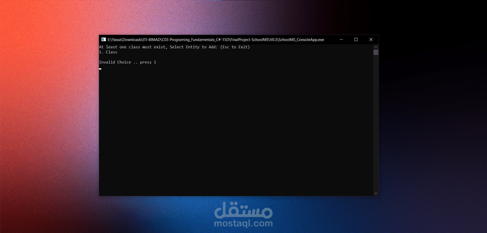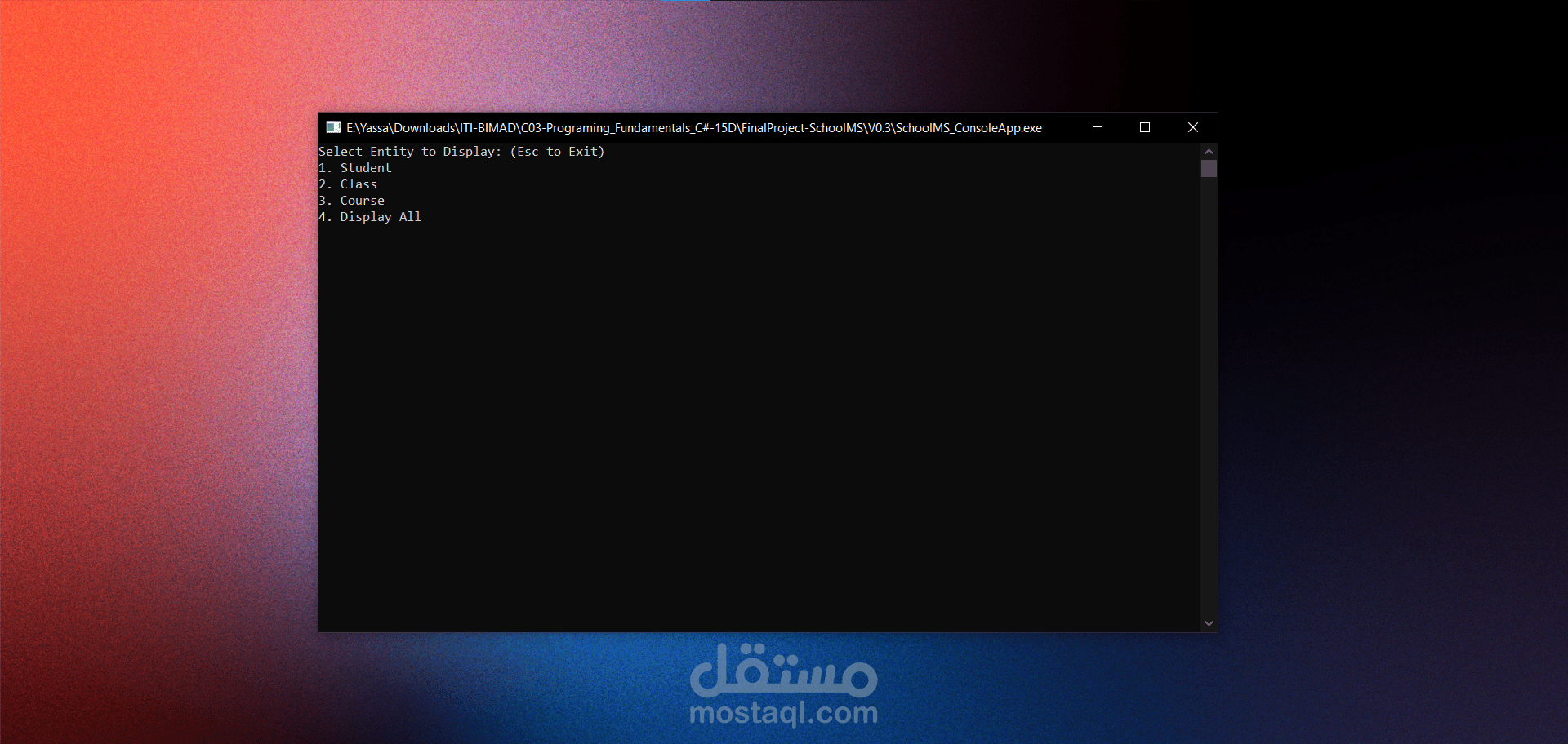 التقنيات: C# · .NET Core · SQLite · Console UI