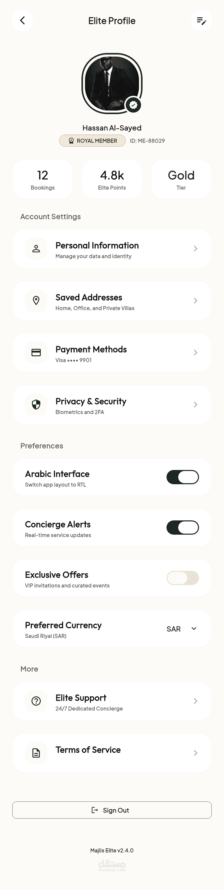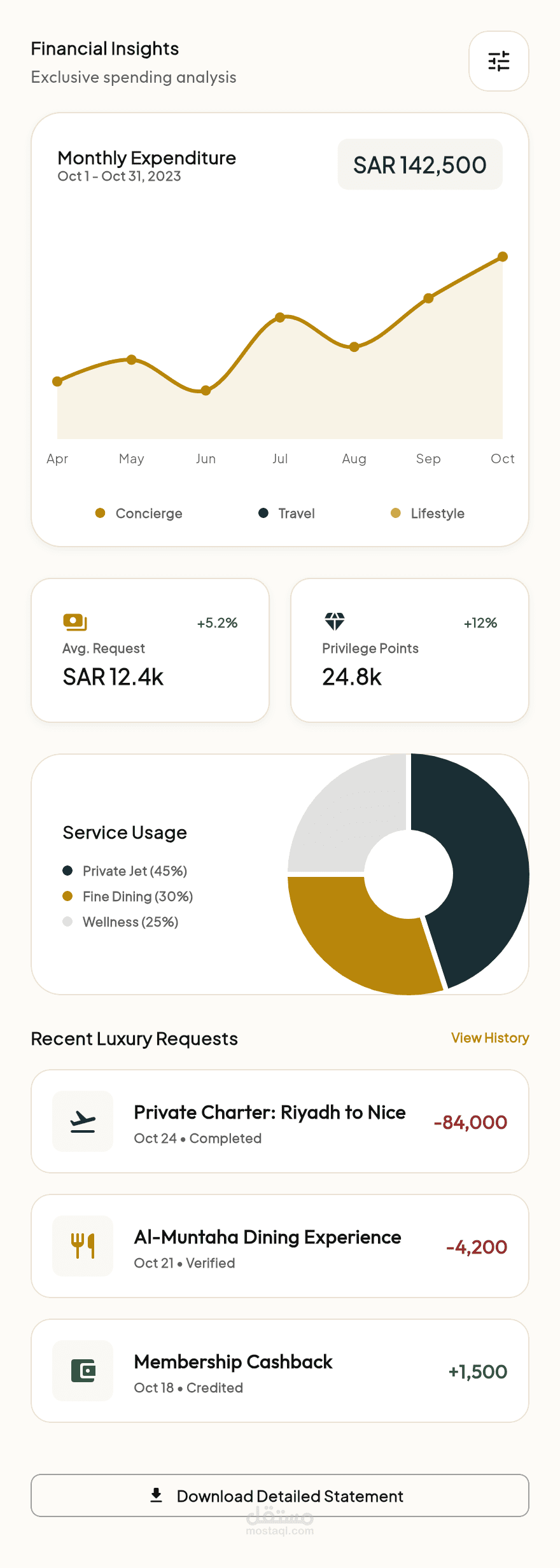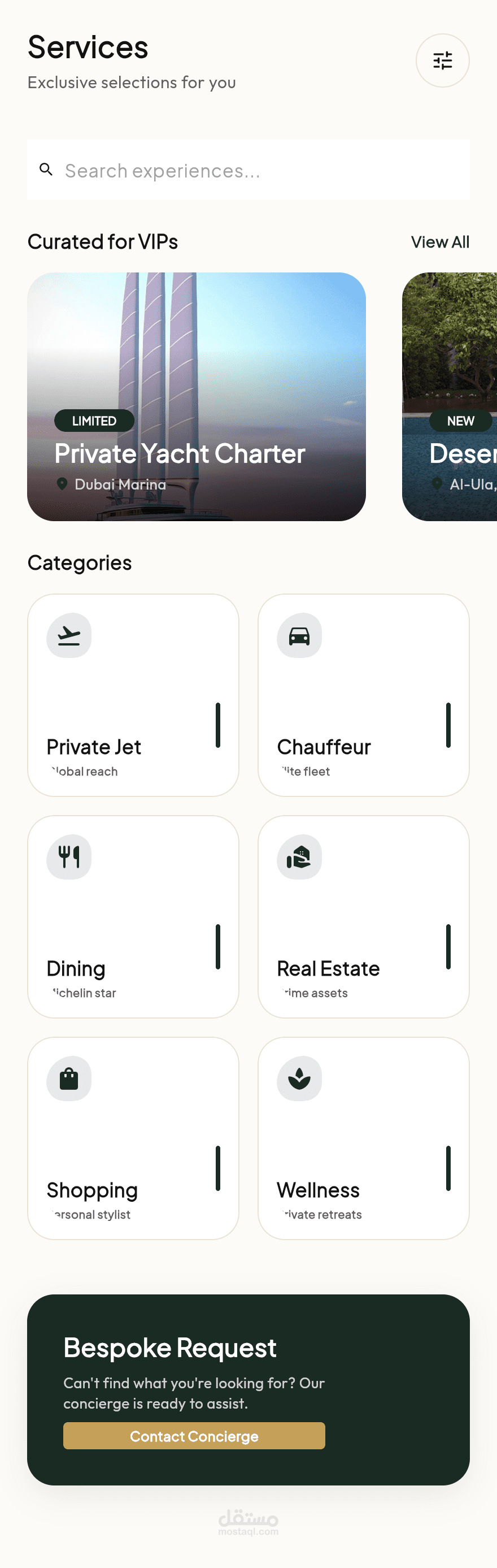 Designed and architected a premium mobile application for luxury lifestyle and concierge services tailored to the Gulf market. Led the product vision, mobile user experience strategy, full-stack solution planning, and data-driven service flow design to create a refined digital experience for high-value users. Built a mobile-first platform focused on premium booking journeys, personalized services, seamless communication, membership features, and elegant visual presentation. The final product concept combined Arabic-first usability, executive-level aesthetics, operational efficiency, and intelligent user experience into one high-end mobile solution.