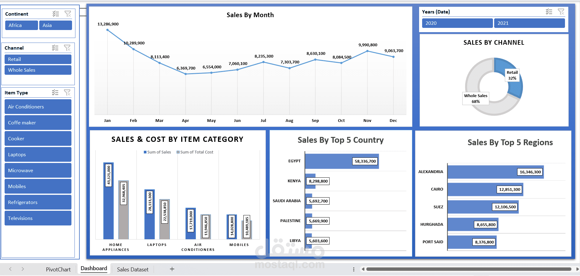 إنشاء Pivot Tables و Pivot Charts لاستخلاص المؤشرات الرئيسية (KPIs).