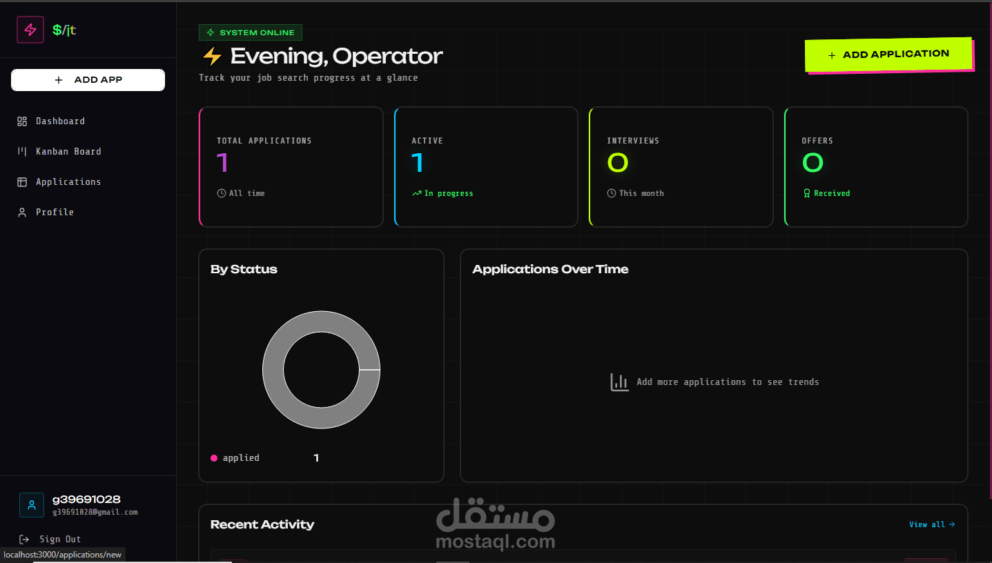 هذا المشروع هو تطبيق ويب متكامل لإدارة عمليات البحث عن العمل (Job Search Tracker) مبني بتقنية Next.js مع قاعدة بيانات Supabase.
