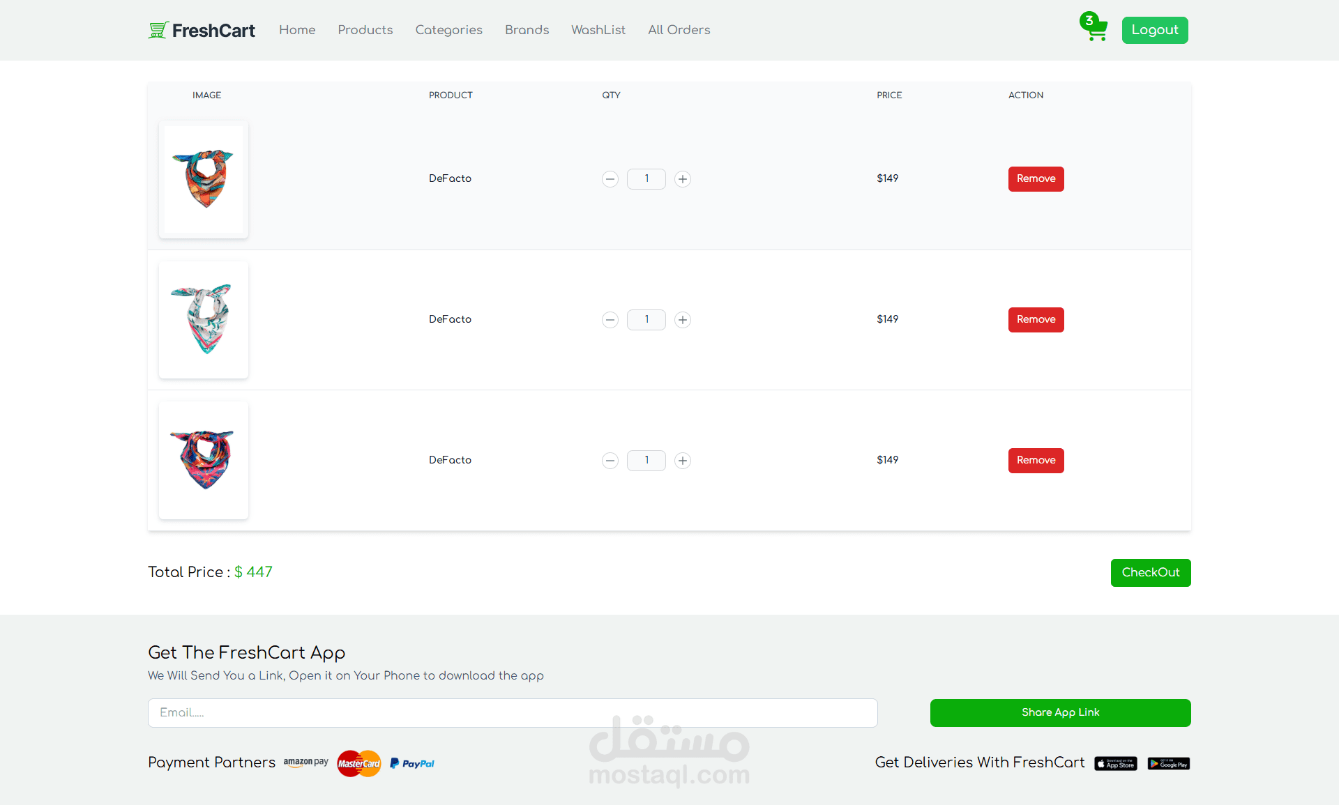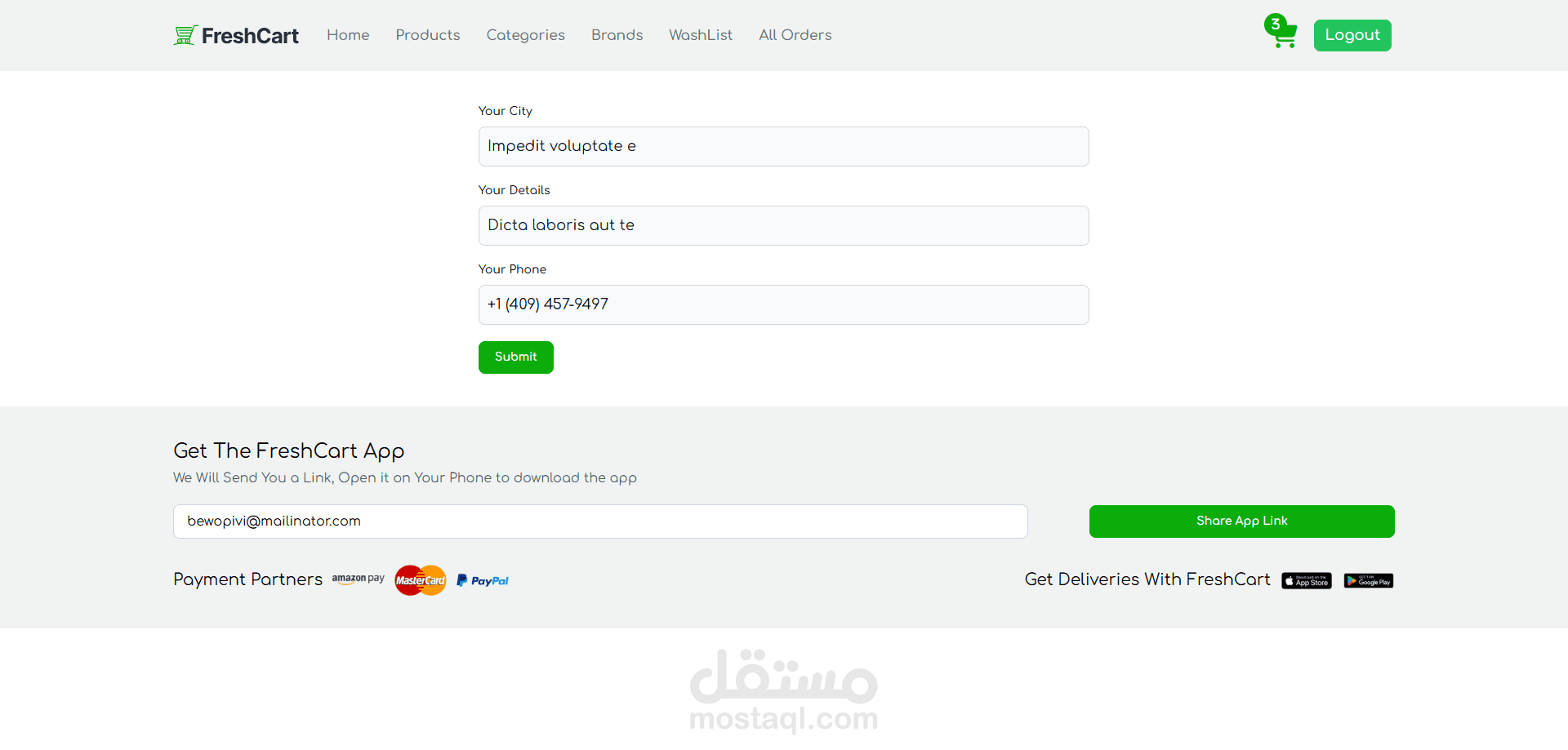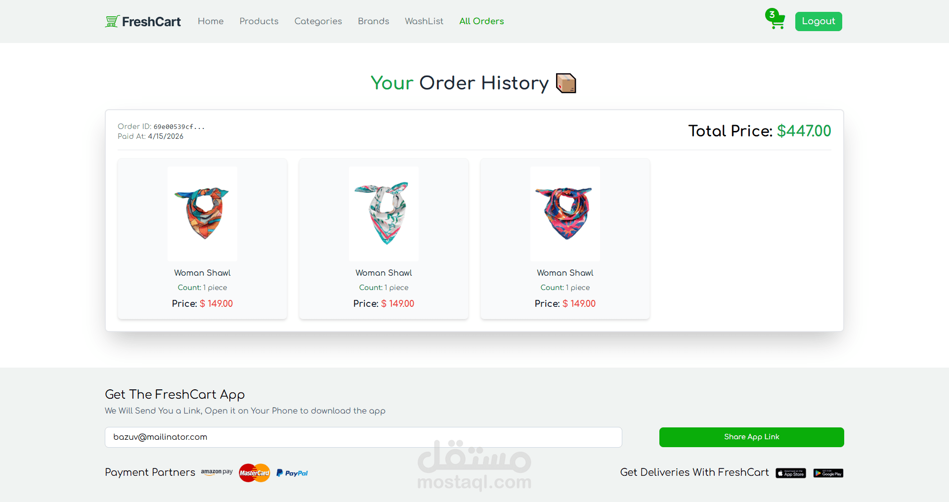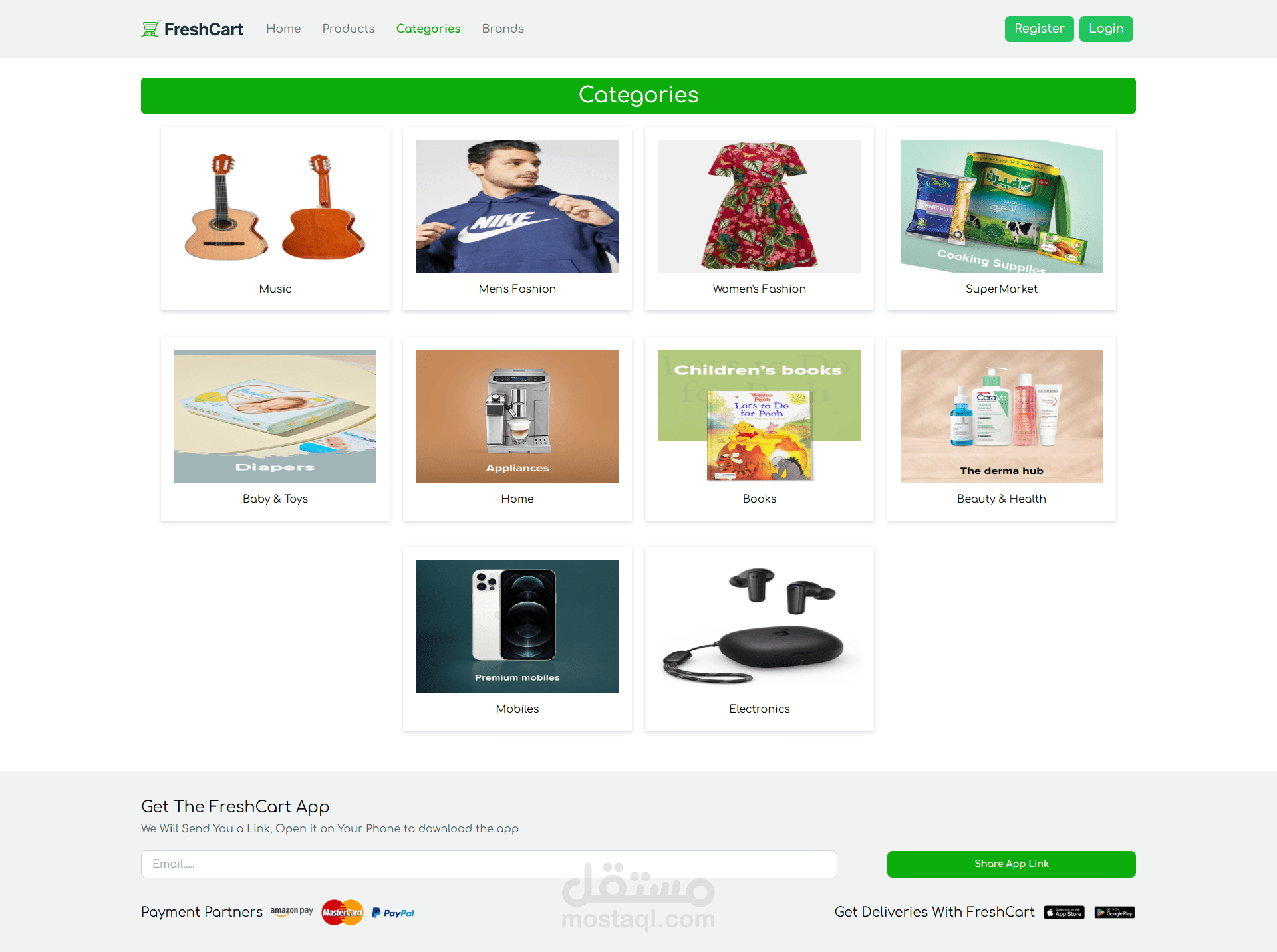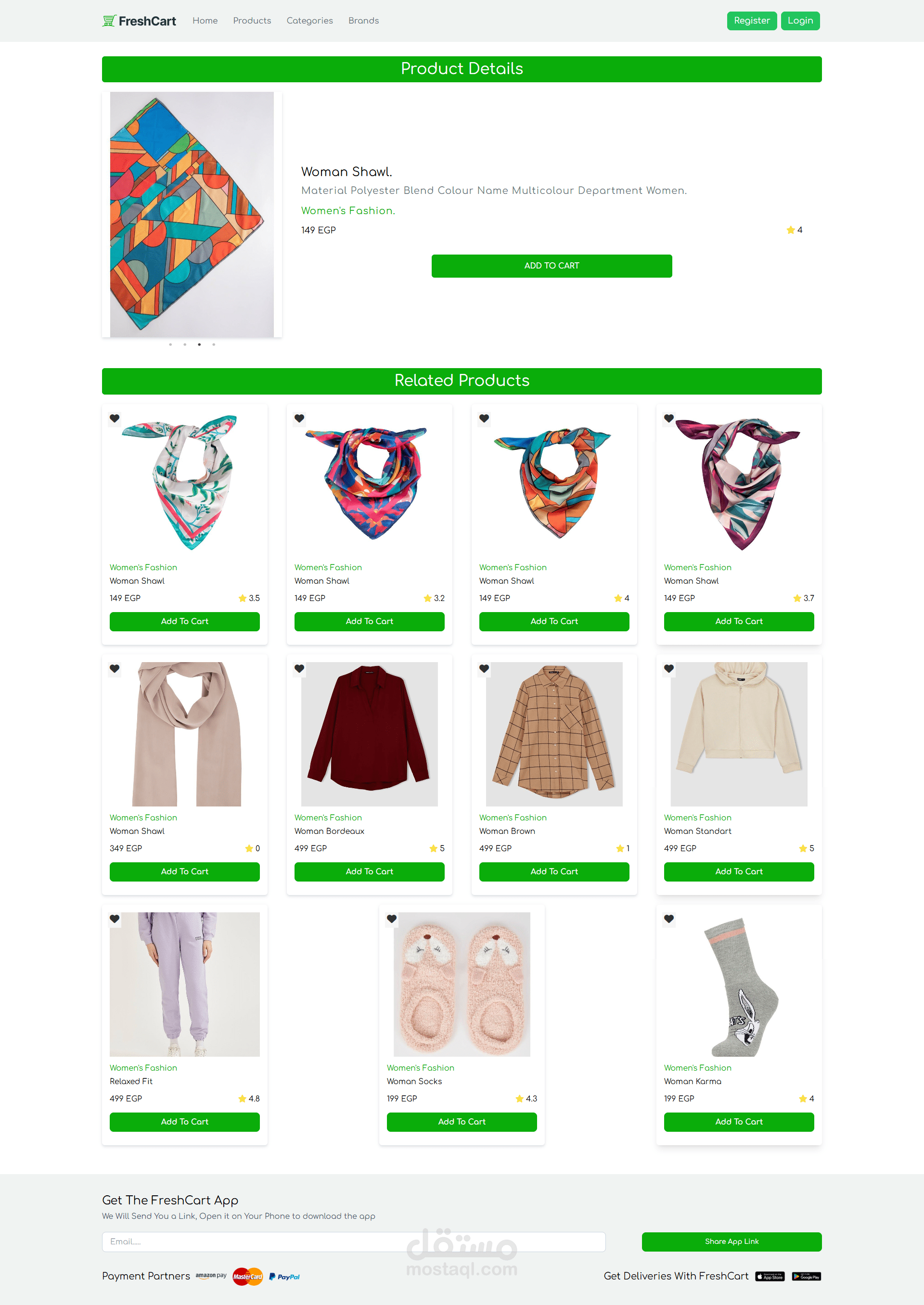 قمت بتطوير موقع تجارة إلكترونية متكامل باستخدام React.js (Vite)، يهدف إلى تقديم تجربة مستخدم سلسة وسريعة مع تصميم عصري ومتجاوب مع جميع الأجهزة.