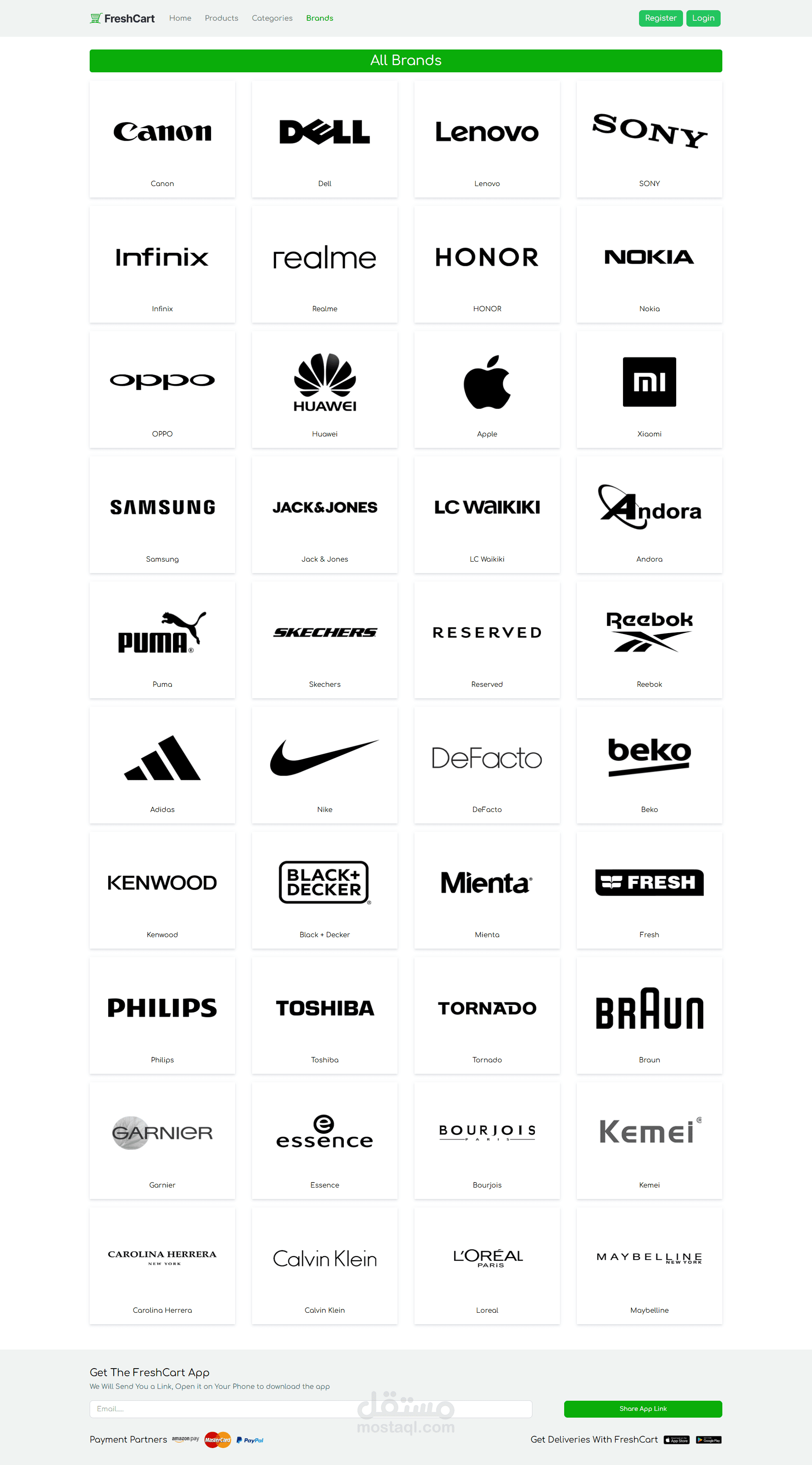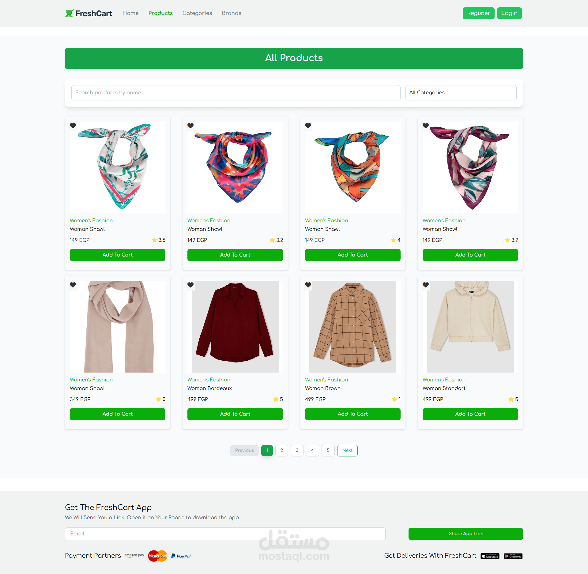 فلترة المنتجات حسب الفئة والعلامة التجارية