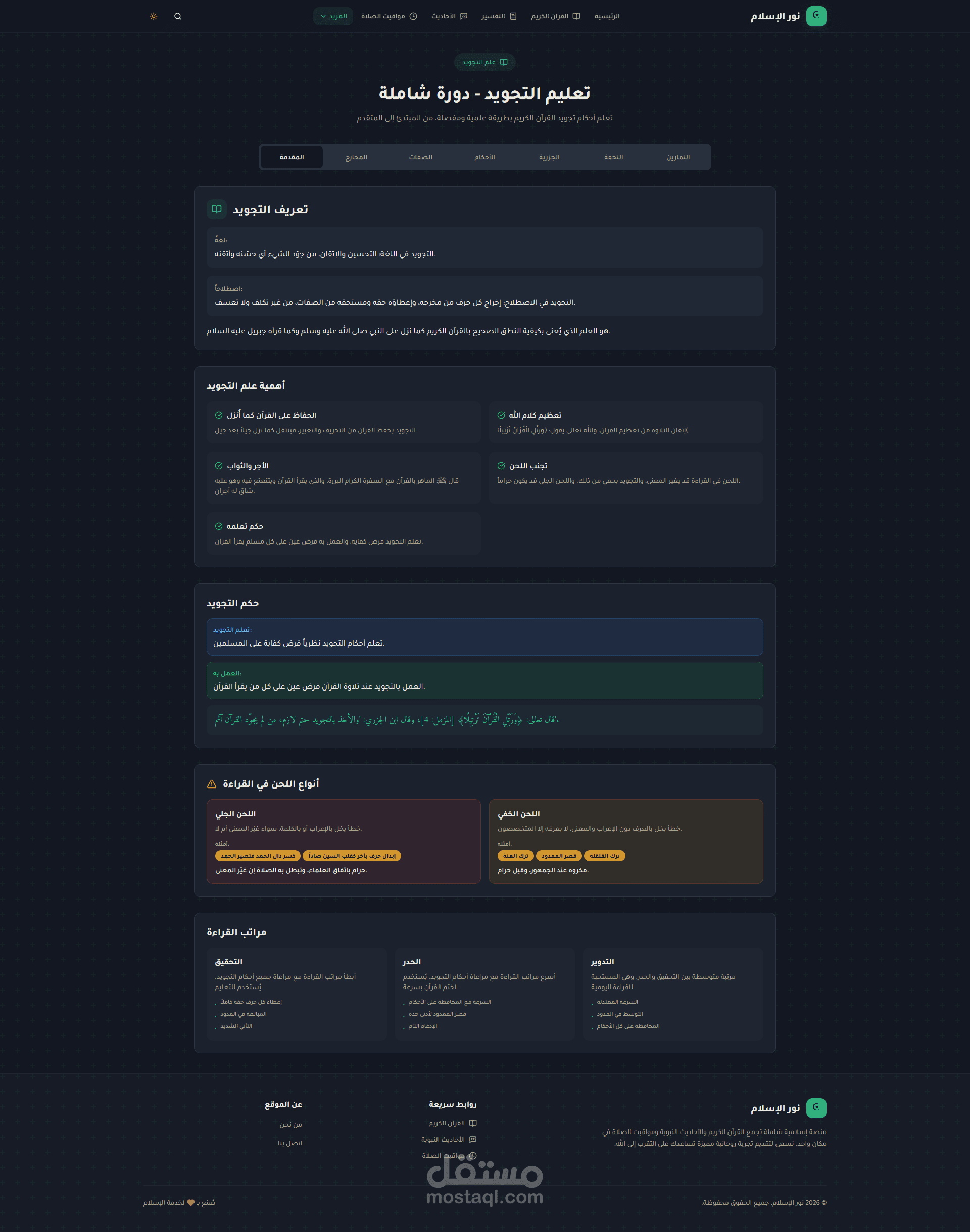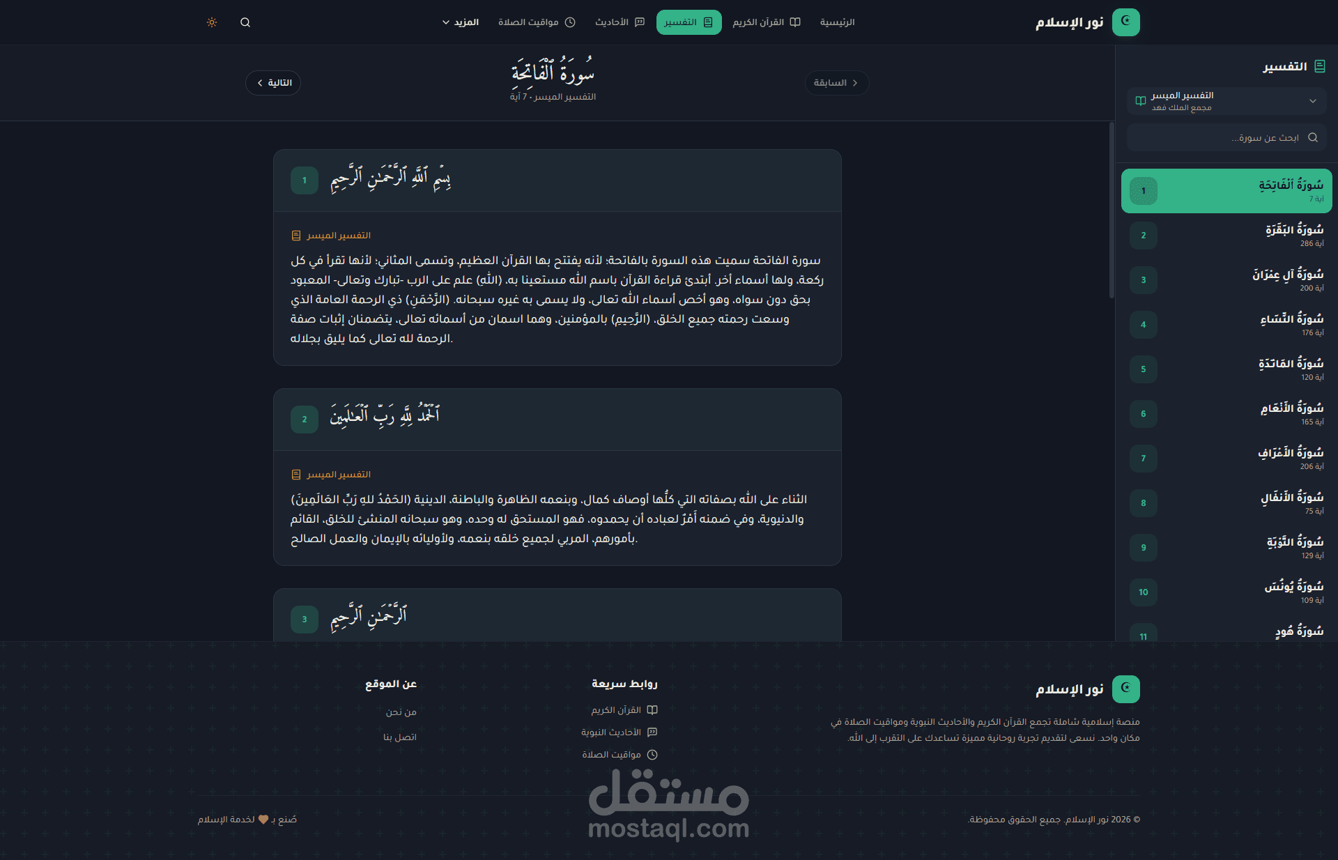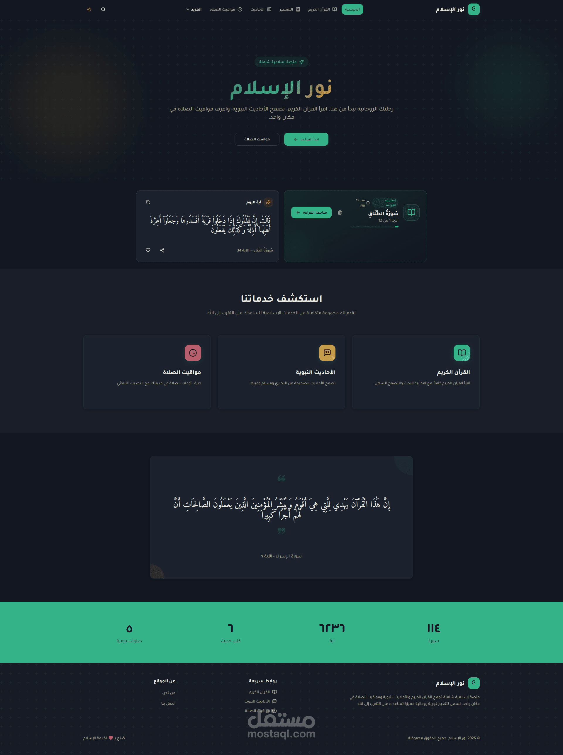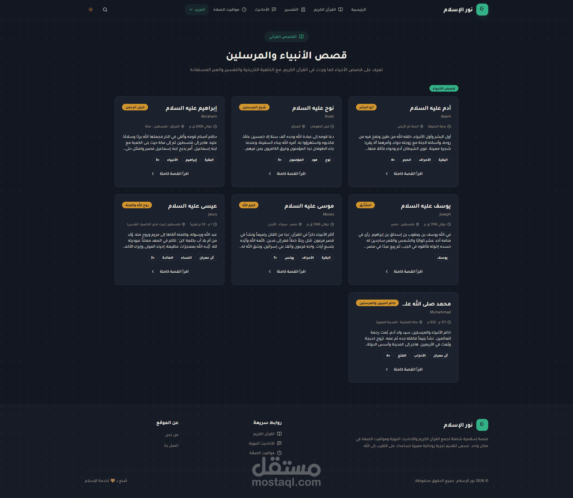 قمت بتطوير منصة نور الإسلام، وهي تطبيق ويب حديث يهدف إلى تقديم مجموعة شاملة من الأدوات والموارد الإسلامية في تجربة استخدام سهلة وسلسة، مع تصميم عصري متجاوب مع جميع الأجهزة.