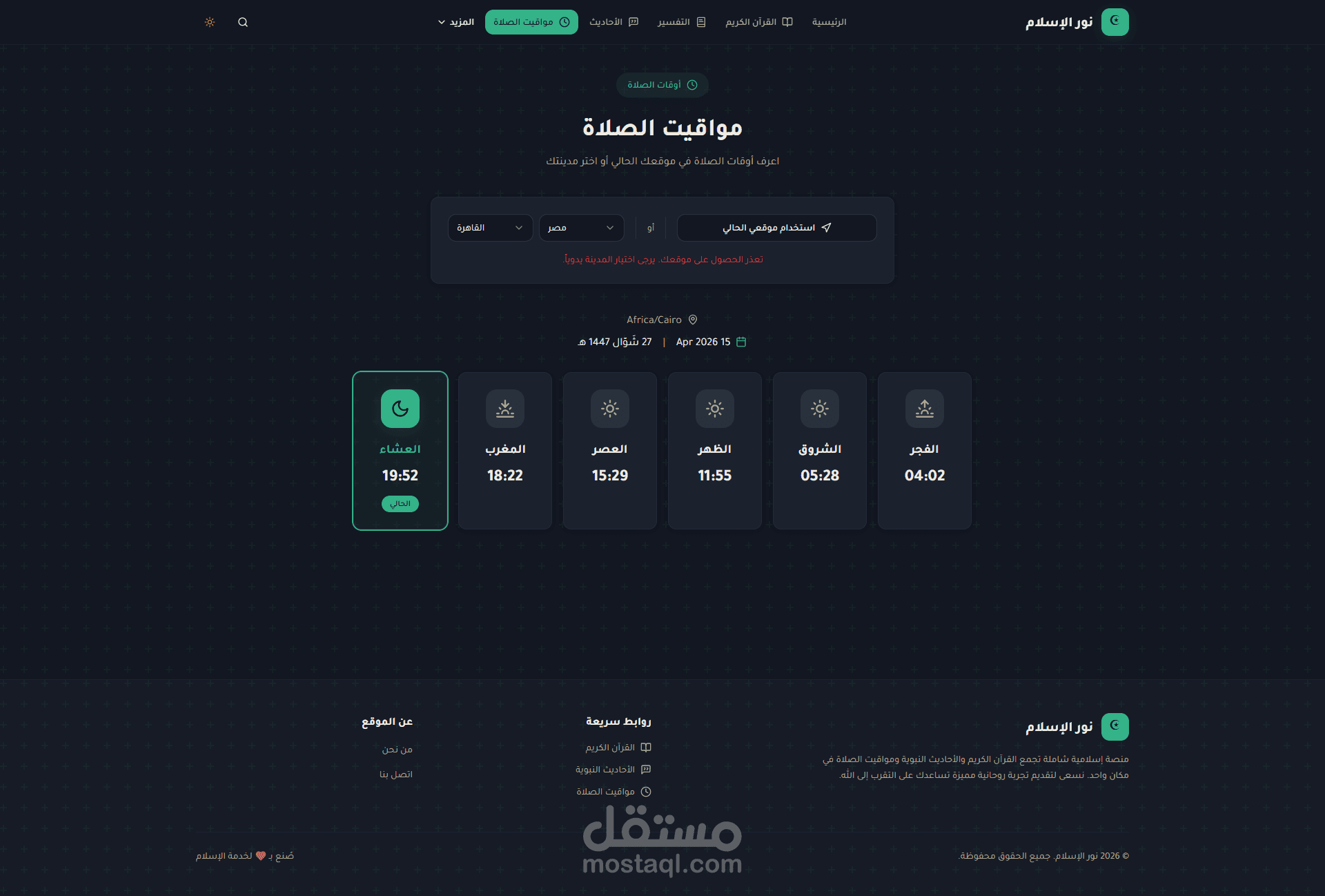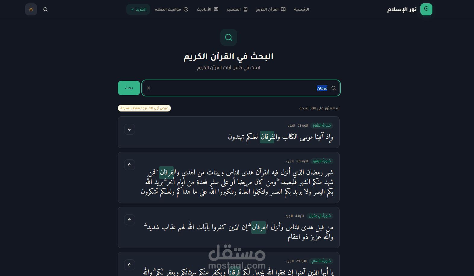 المشروع يعكس قدرتي على بناء تطبيقات ويب متقدمة تجمع بين الأداء العالي، تجربة المستخدم الممتازة، وتنظيم الكود بطريقة احترافية قابلة للتوسع، مع الاهتمام بالتفاصيل الدينية والتقنية في نفس الوقت.