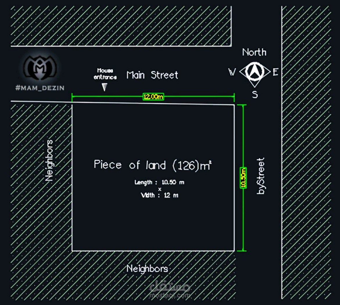 هو مبنى سكنى عائلى مكون من ٤ طوابق علويه مكرره ودور ارضى . ابعاد قطعة الارض البناء ١٢ × ١٠.٥ م (:١٢٦ متر مربع )