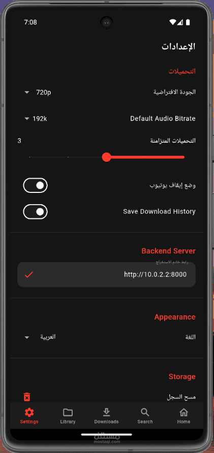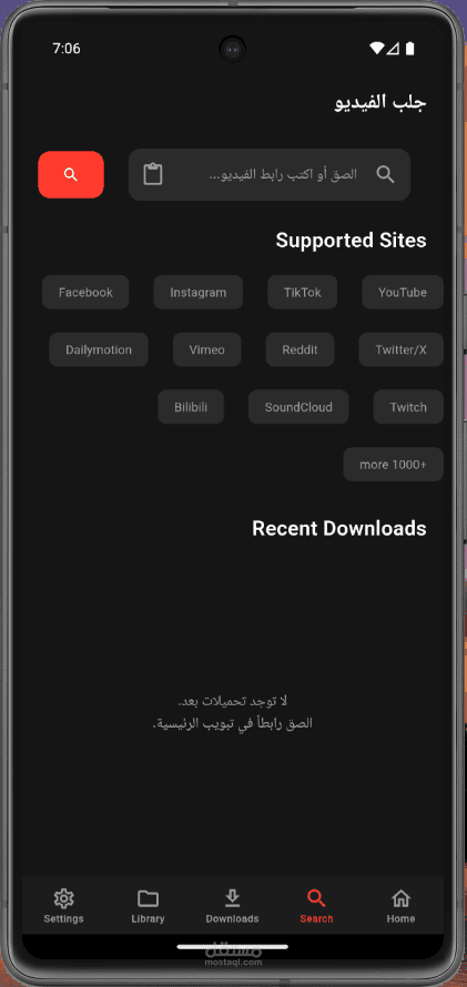 استقبال الروابط من التطبيقات الأخرى: دعم مشاركة الروابط (مثل يوتيوب) للتحميل أو التشغيل الفوري