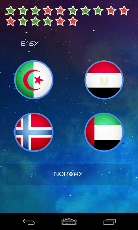 Flags Game helps you to learn the names and the flags of all contries in a very simple and funny way ,it has more than 200 contry , different chanllenges and levels .