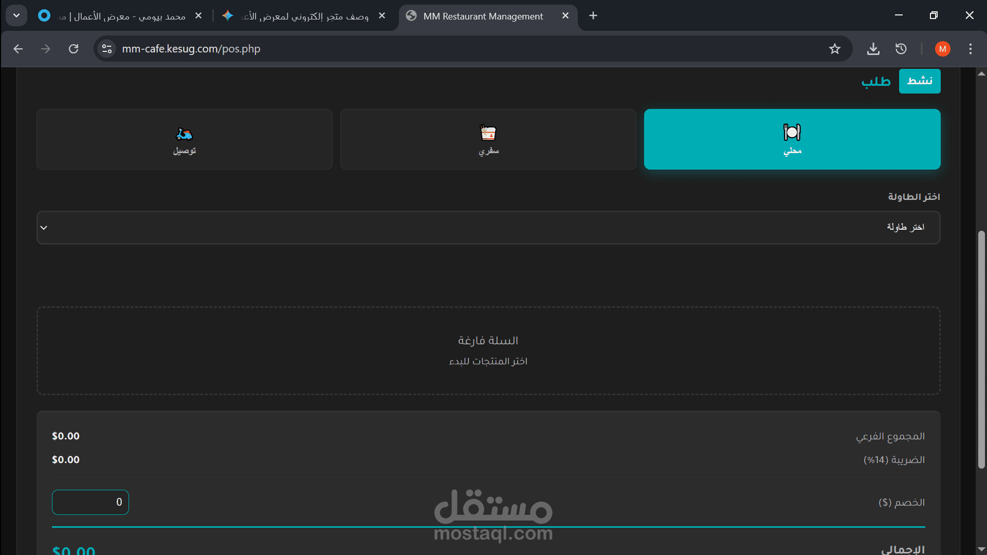 تعدد أنواع الطلبات: دعم كامل لطلبات (الصالة - التيك أواي - الدليفري).