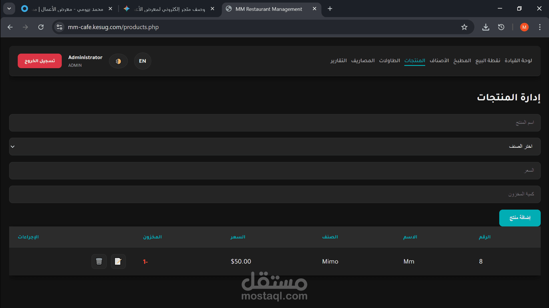 إدارة قائمة الطعام (Menu Management) وإضافة الأصناف والأسعار بسهولة عبر لوحة التحكم.