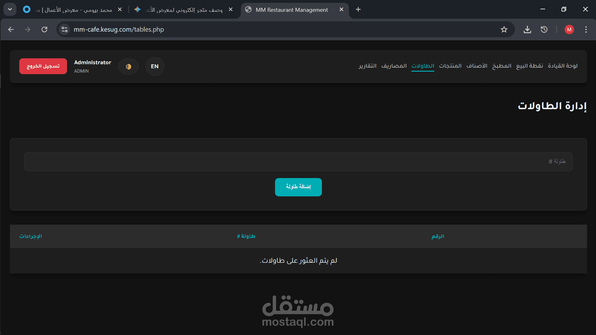 إدارة الطاولات: نظام تفاعلي لإضافة وتوزيع الطاولات ومتابعة حالتها (شاغرة/مشغولة) في الوقت الفعلي.