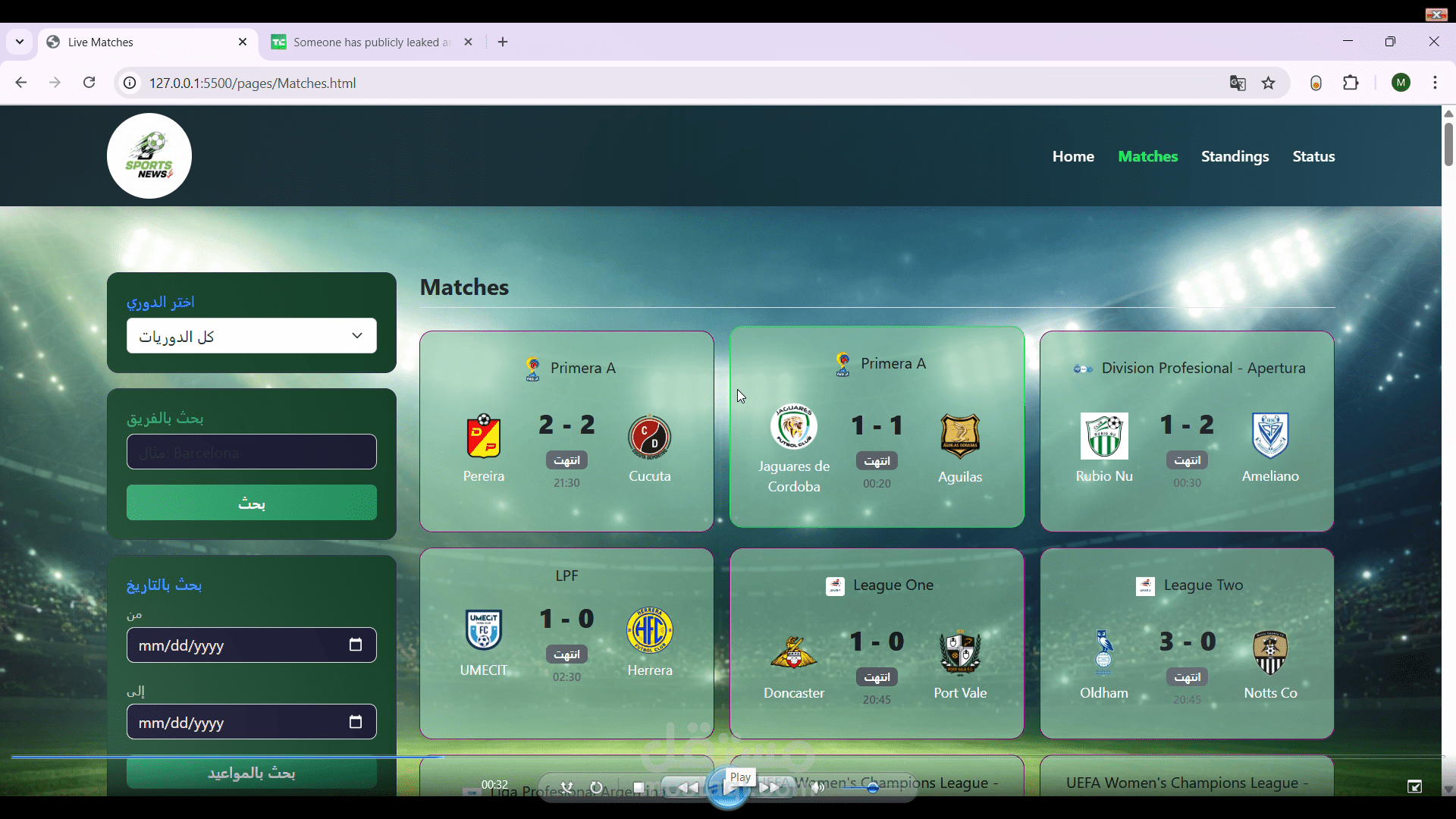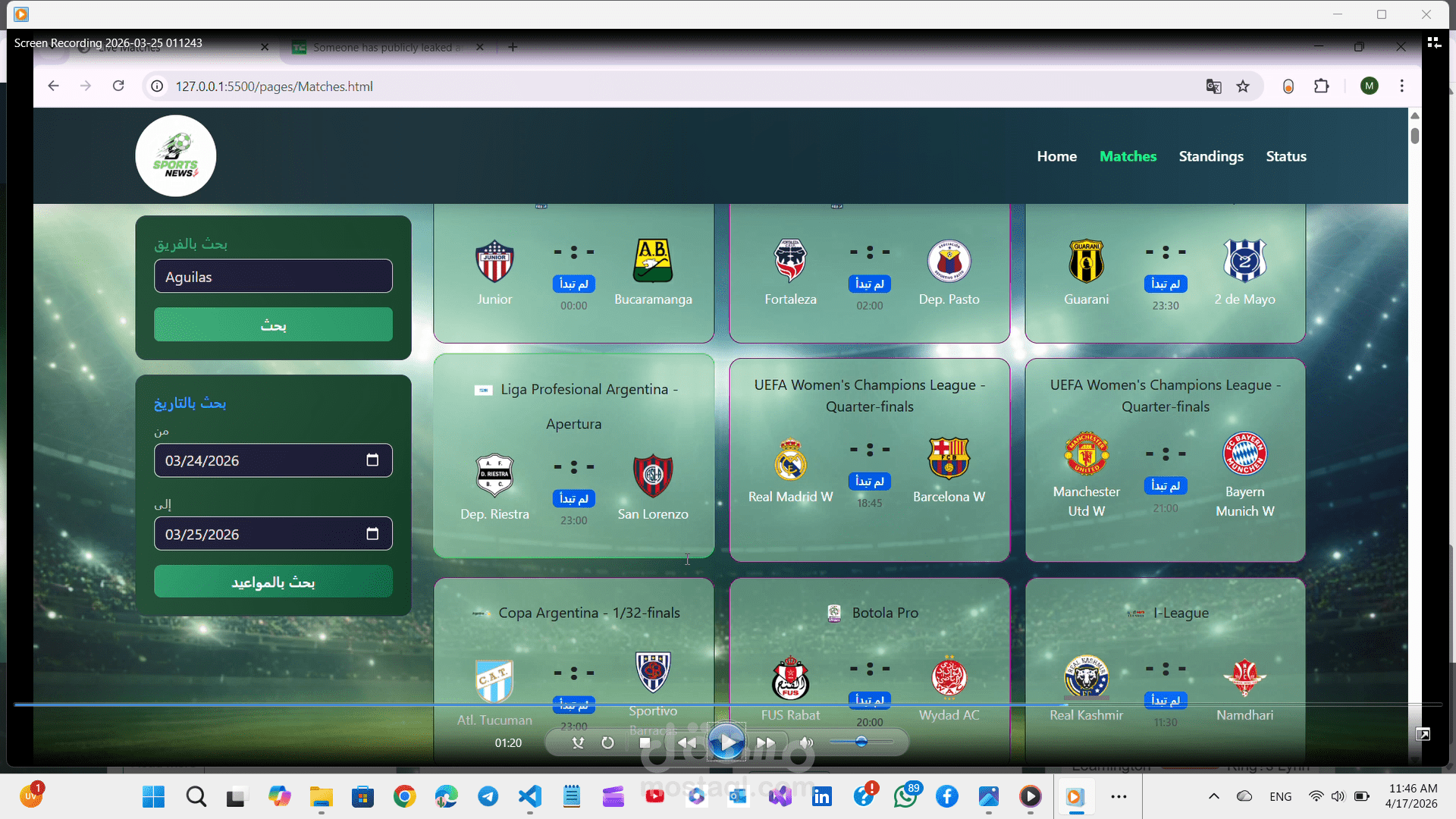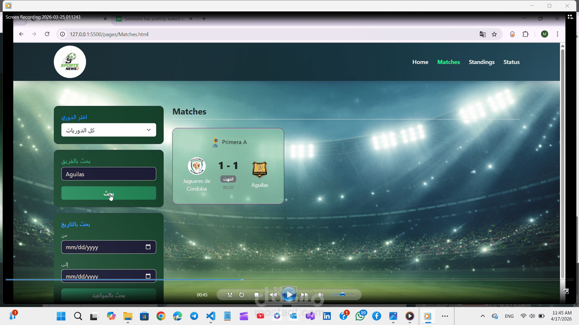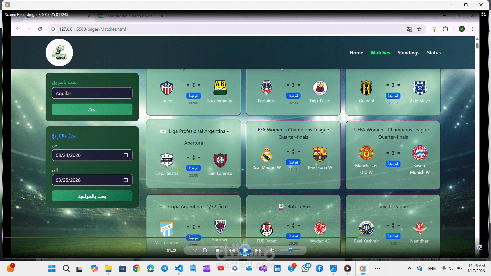 * ? **Search Functionality**: إمكانية البحث عن أي خبر أو موضوع معين بسهولة.