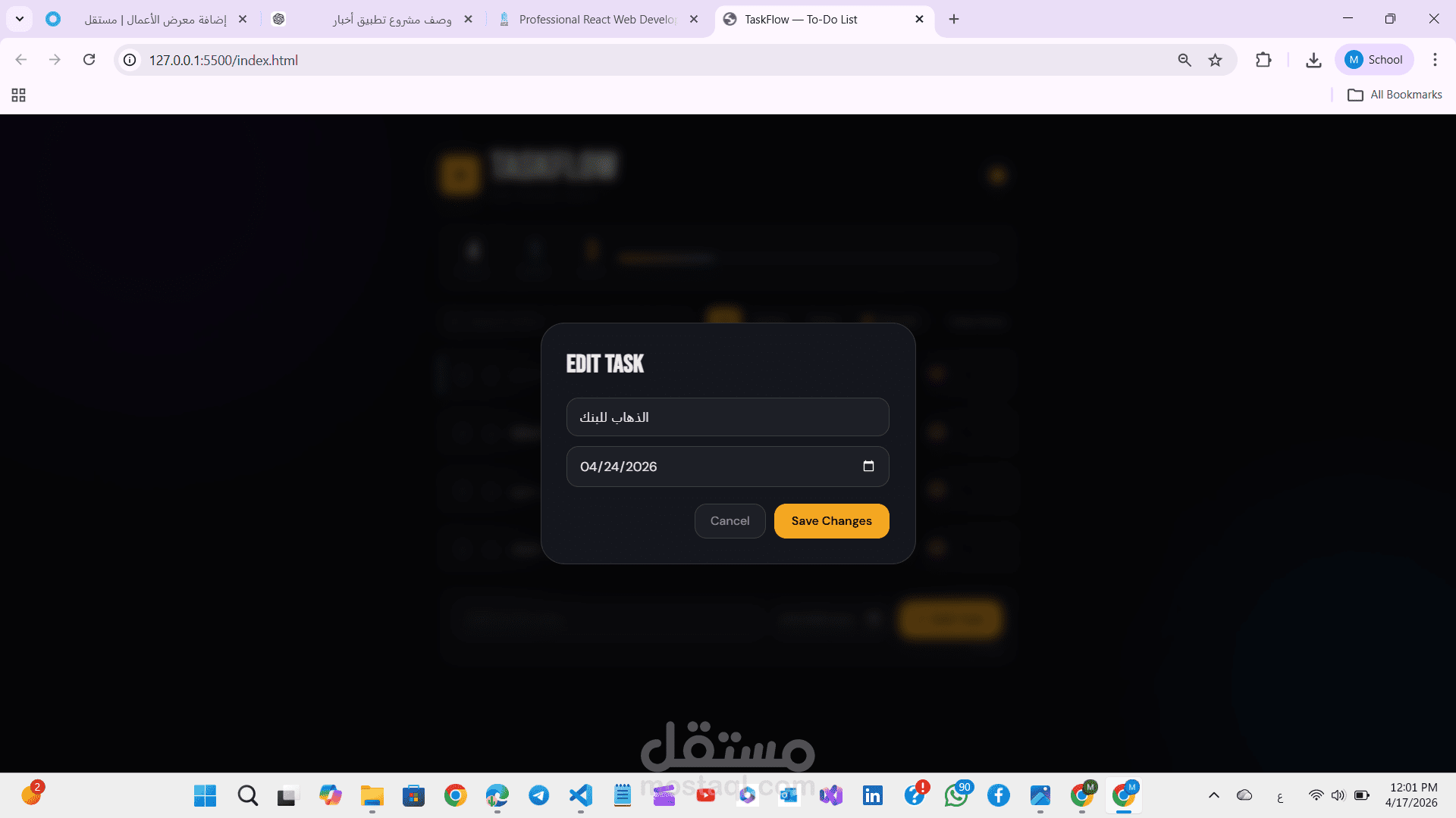 * حفظ المهام بعد إعادة تحميل الصفحة