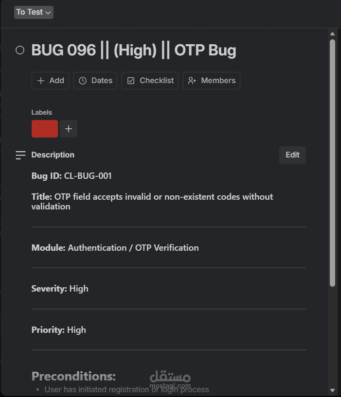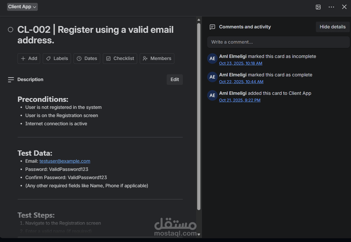 قمت بتنفيذ عملية اختبار شاملة (End-to-End Manual Testing) لتطبيق Qawlni وهو تطبيق Web & Mobile يربط العملاء بمقدمي خدمات الإنشاءات لطلب وإدارة عروض الأسعار (Quotations).