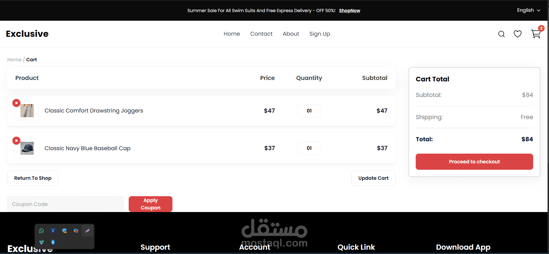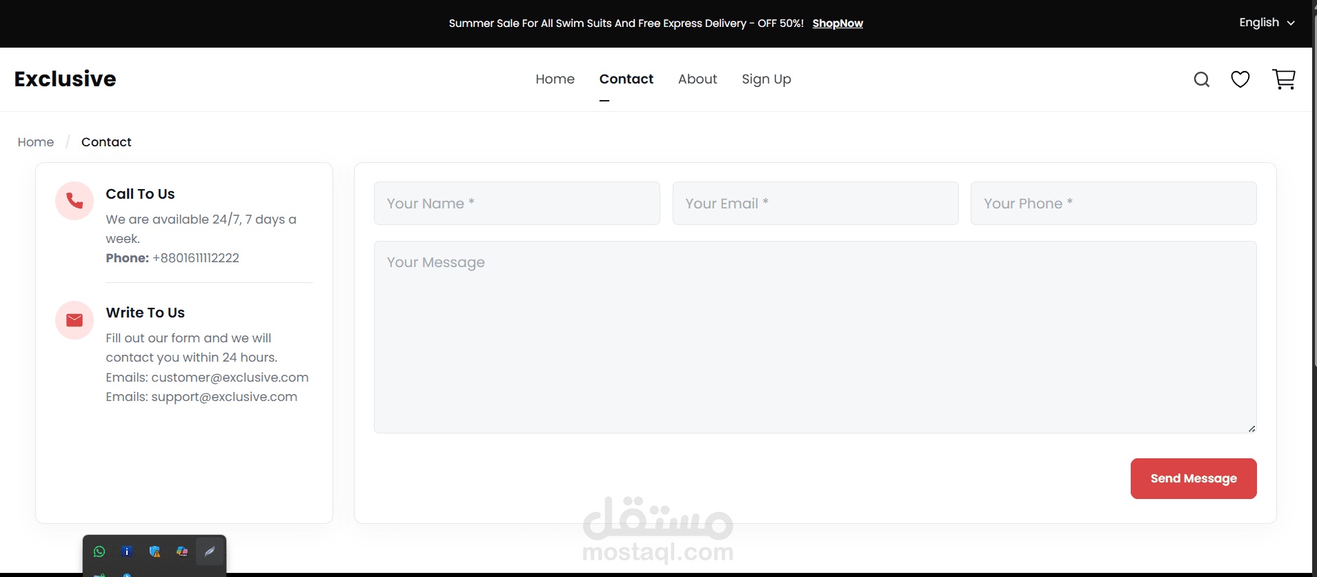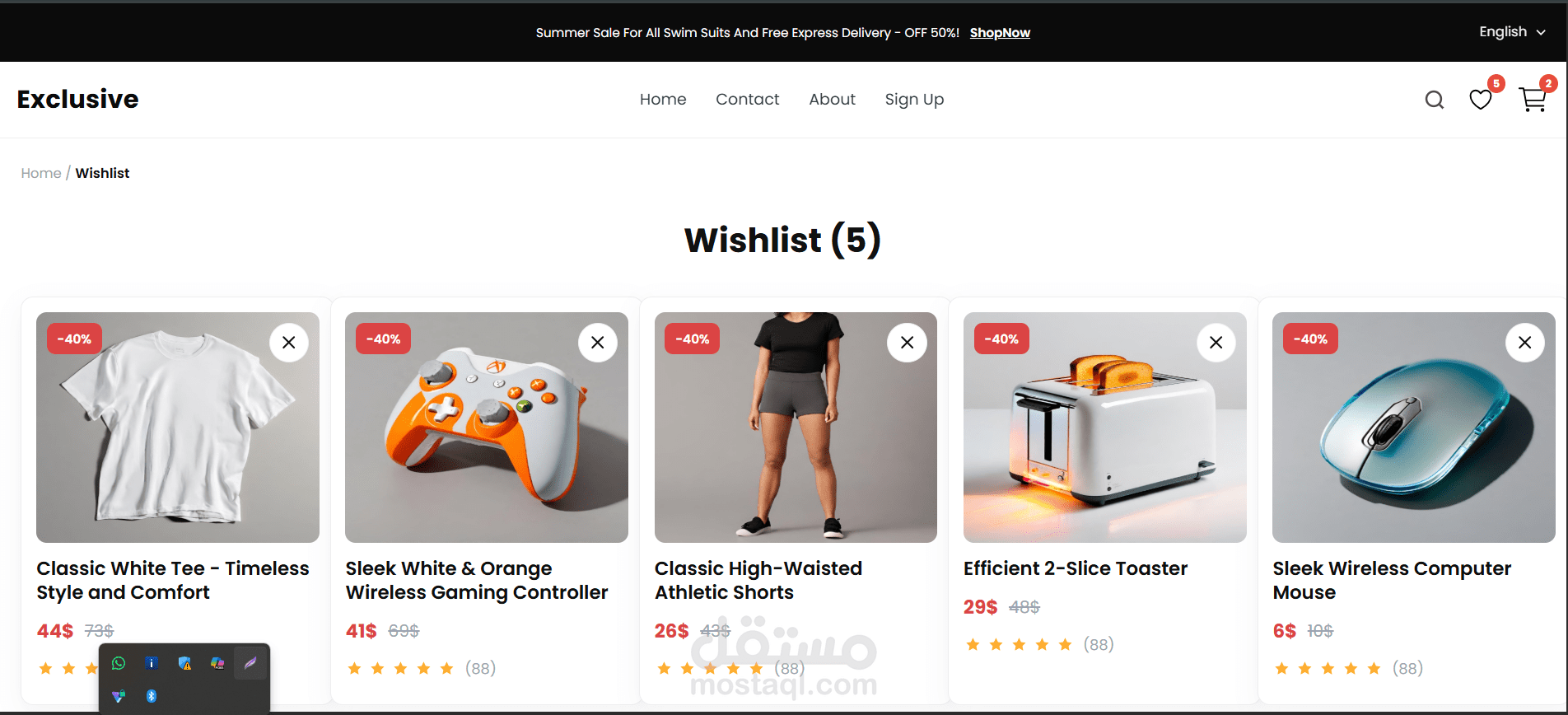 A fully developed e-commerce website built with React and ready for deployment. The project is currently hosted on a free hosting service and server, and it can be transferred to premium hosting with a custom domain based on the client’s preference.