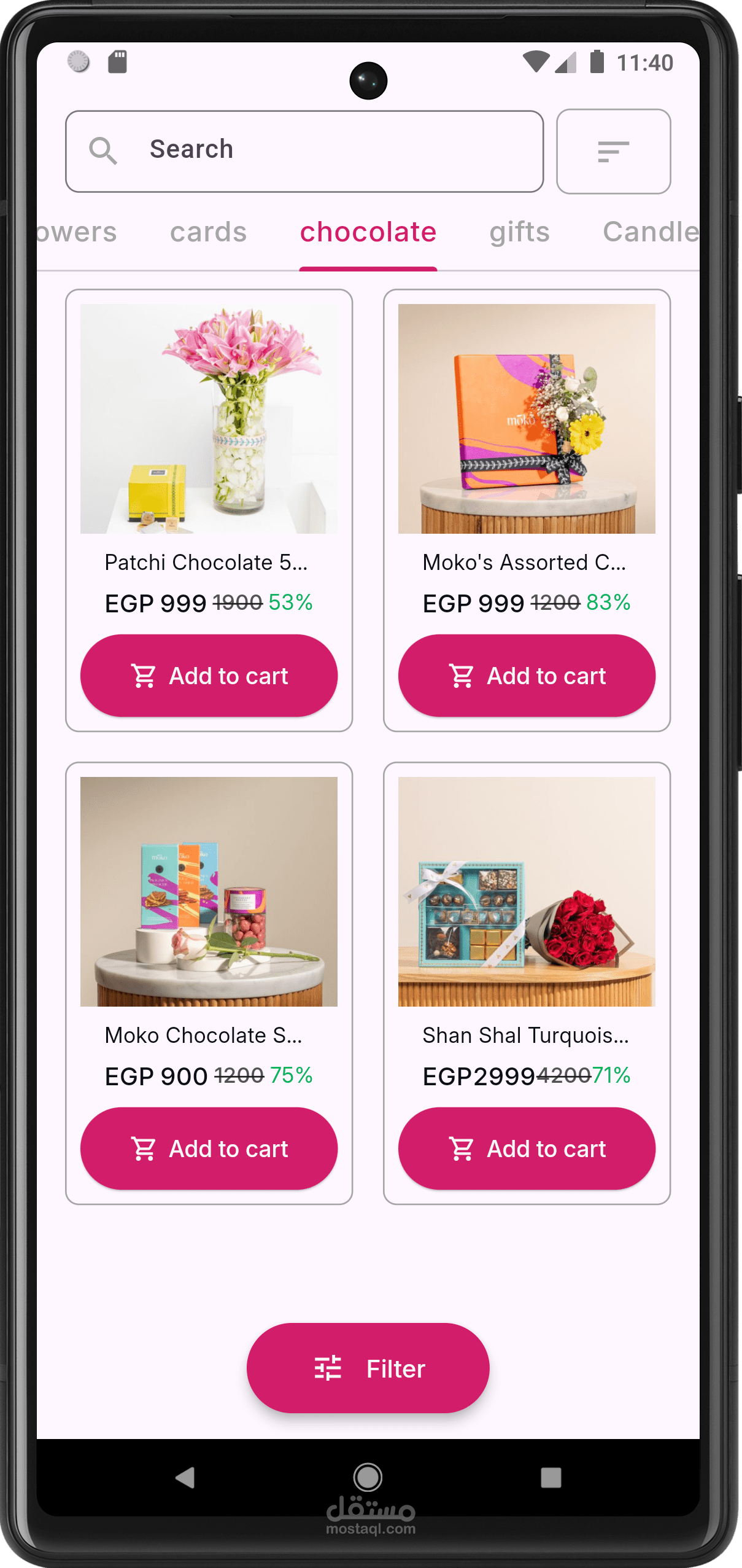 ? Categorized Browsing (Flowers, Cards, Chocolates, Gifts, etc.) with filtering by occasions.
