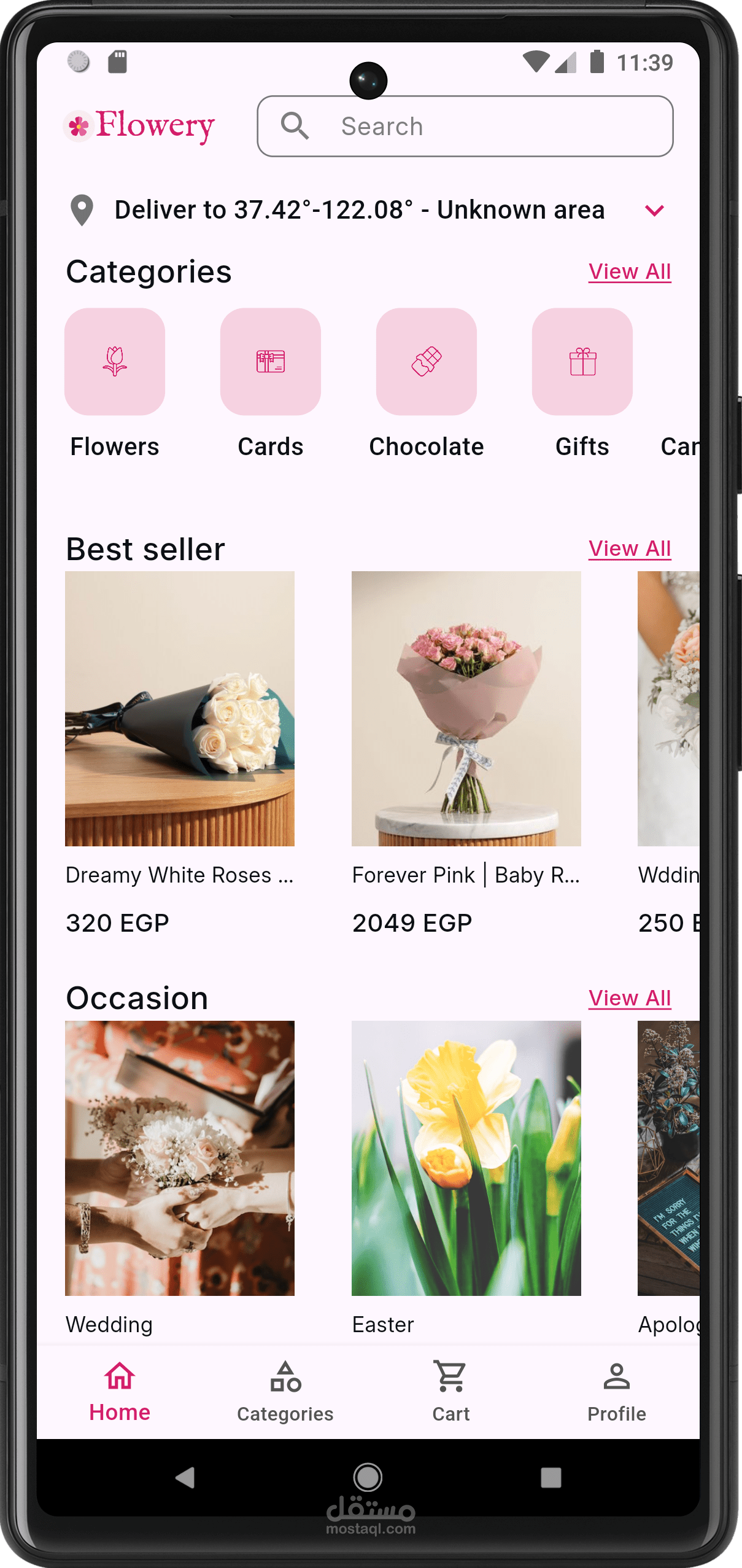 Flowery is a full-featured e-commerce mobile application built using Flutter, designed to offer users a seamless experience in browsing, selecting, and ordering flowers and gifts. It showcases elegant UI design combined with robust Flutter development practices.