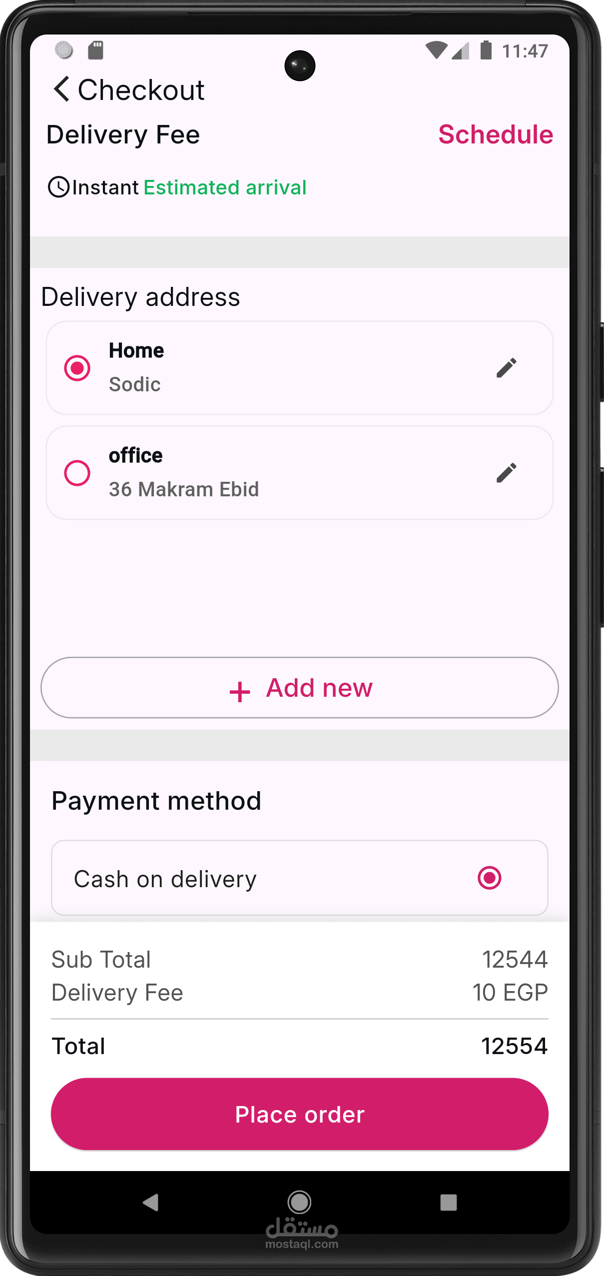 Cart Management with item quantity adjustment, subtotal, delivery fees, and total calculation.