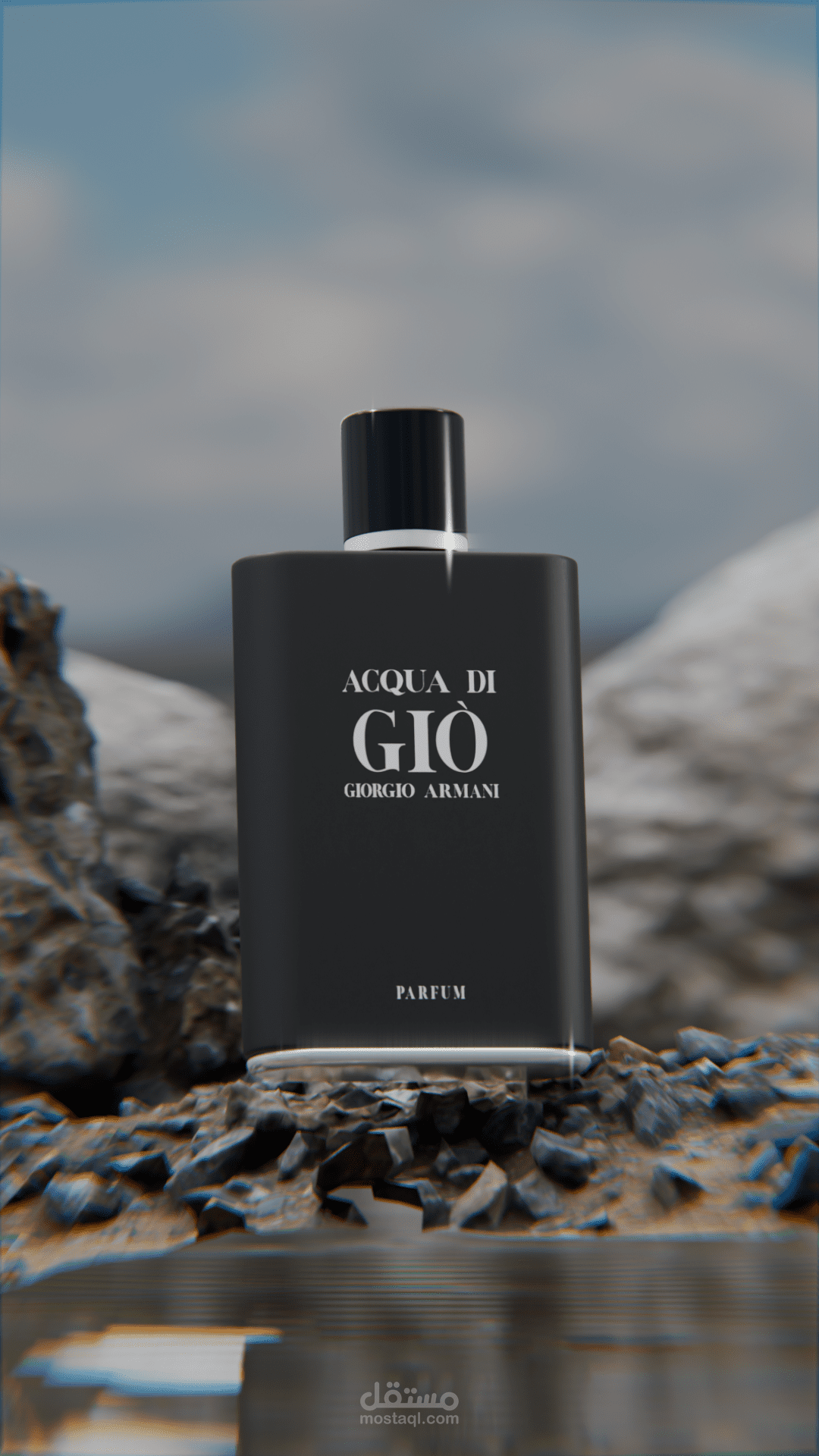 an ultra realistic render for ACQUA DI GIO perfume