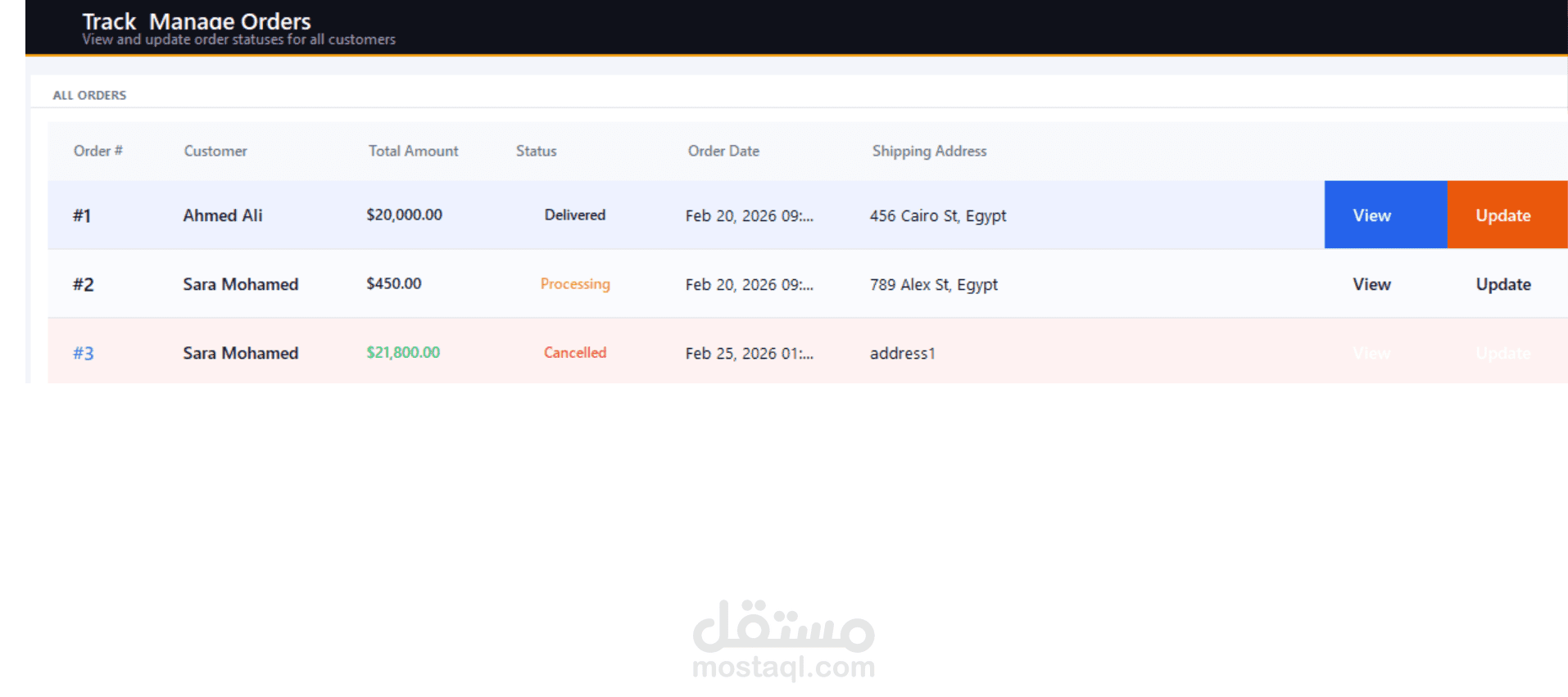 إدارة الطلبات (Orders)