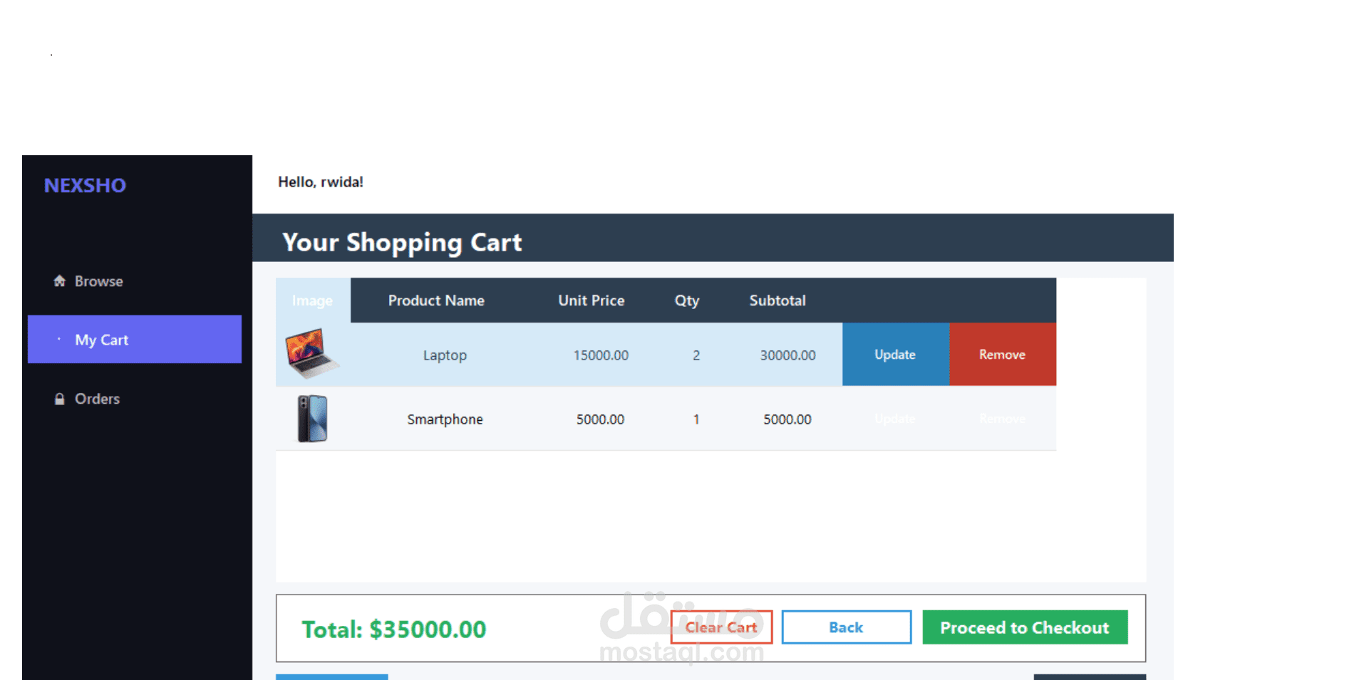 حساب إجمالي الطلبات وإتمام عملية الشراء