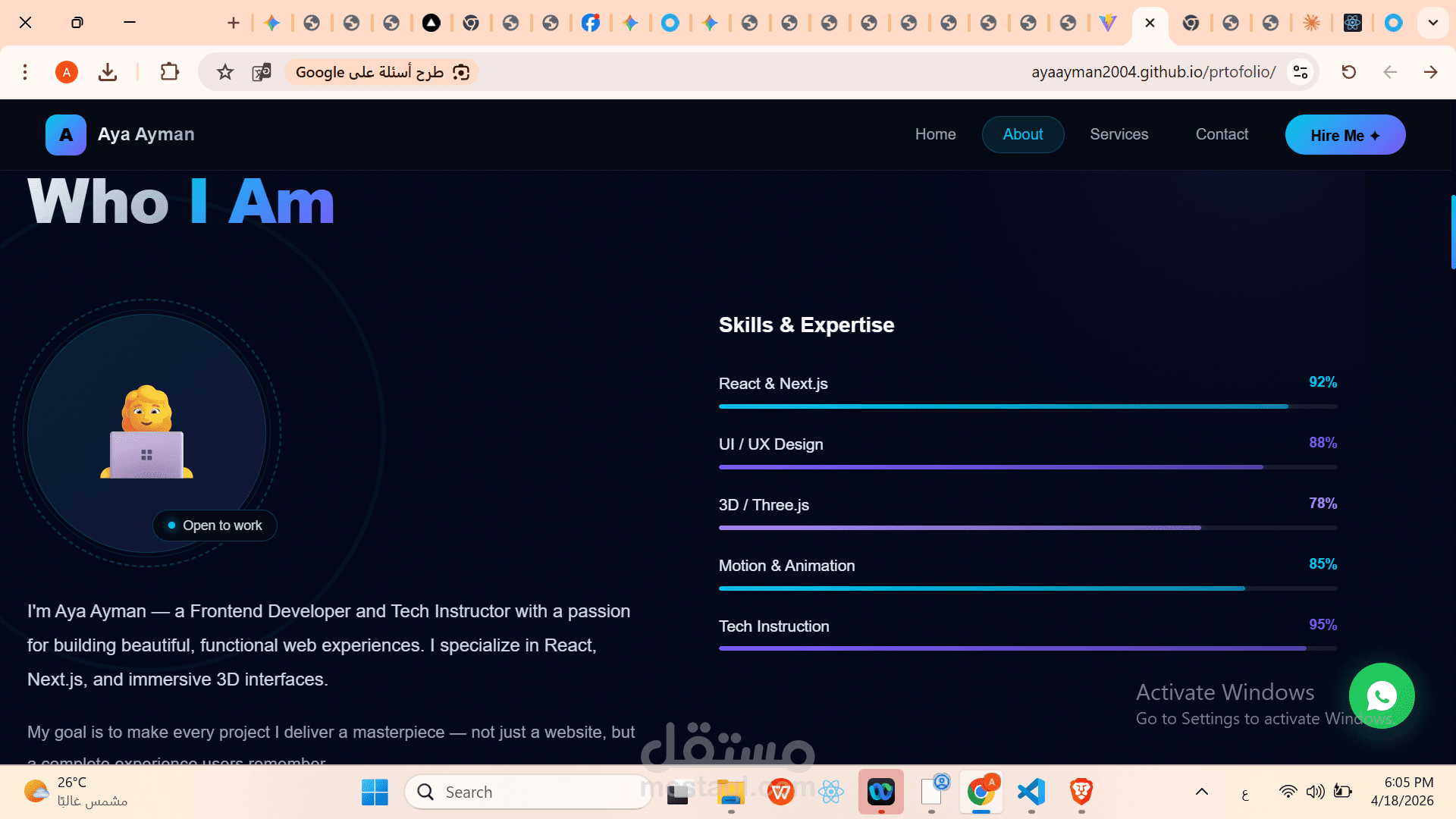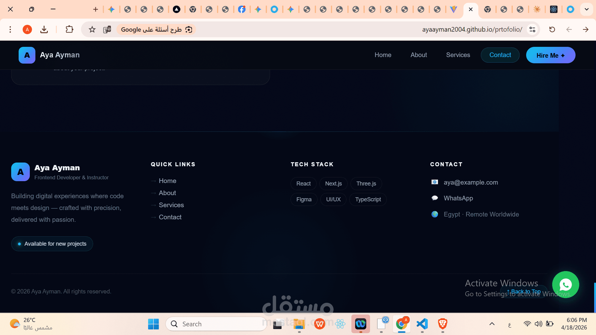 فنحن نتحدث عن واجهة تجمع بين السرعة الفائقة وتجربة المستخدم السلسة. بفضل بنية React القائمة على المكونات (Components)، تتحول صفحة الهبوط من مجرد صفحة ثابتة إلى تطبيق ويب تفاعلي وديناميكي.