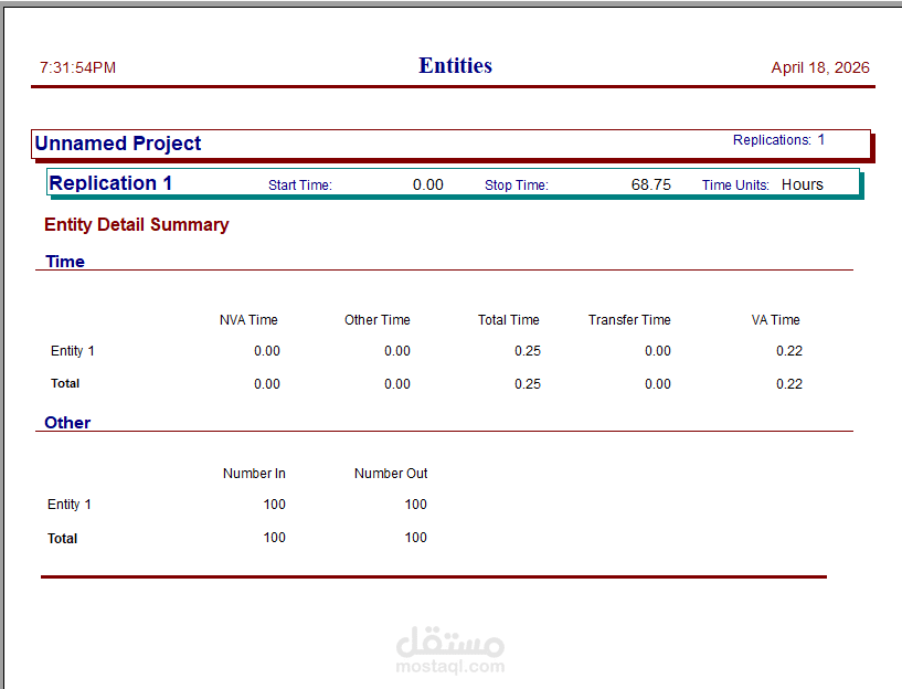 الأدوات: استخدام برنامج Arena Simulation.