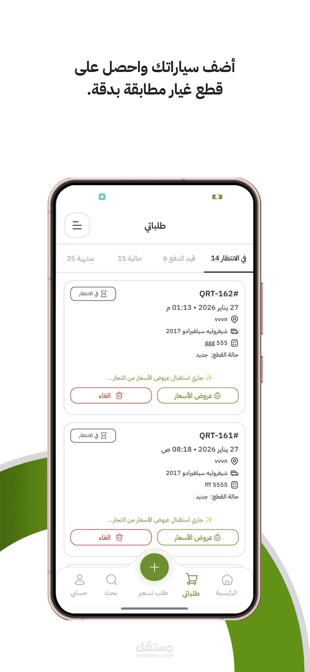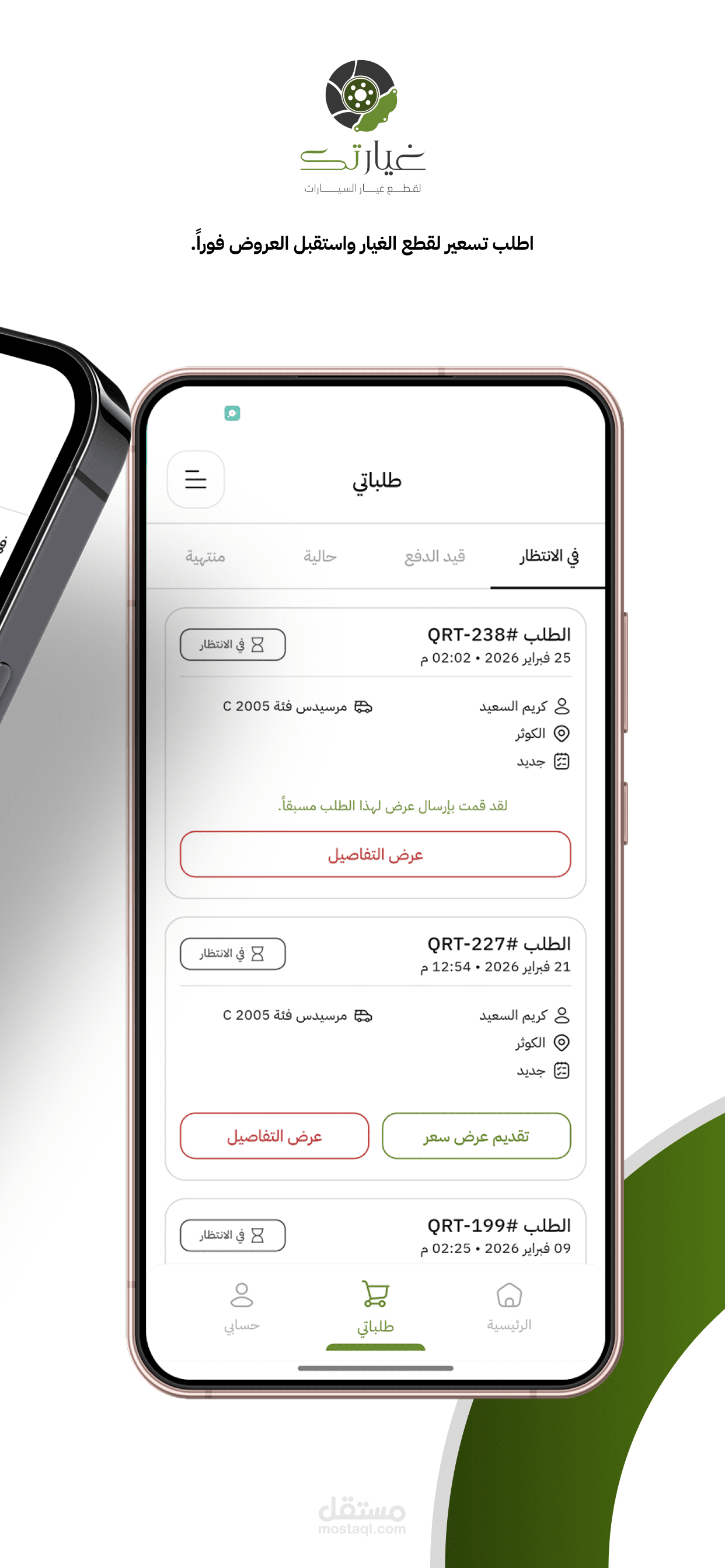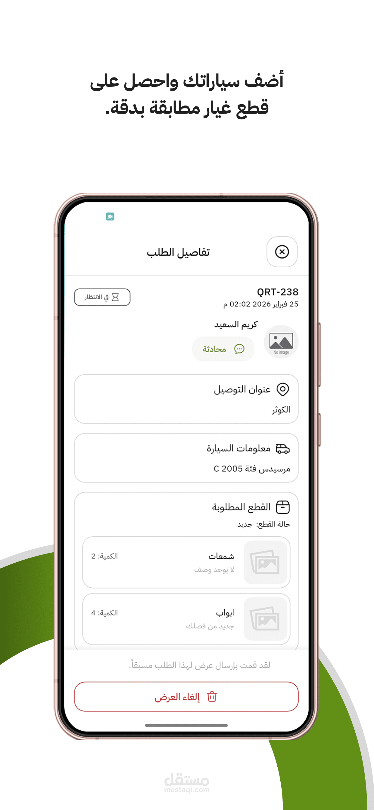 Auto parts ordering platform connecting customers with spare parts merchants. Real-time chat, advanced product search with history tracking, multi-category filtering, and a full order management and coupon system.