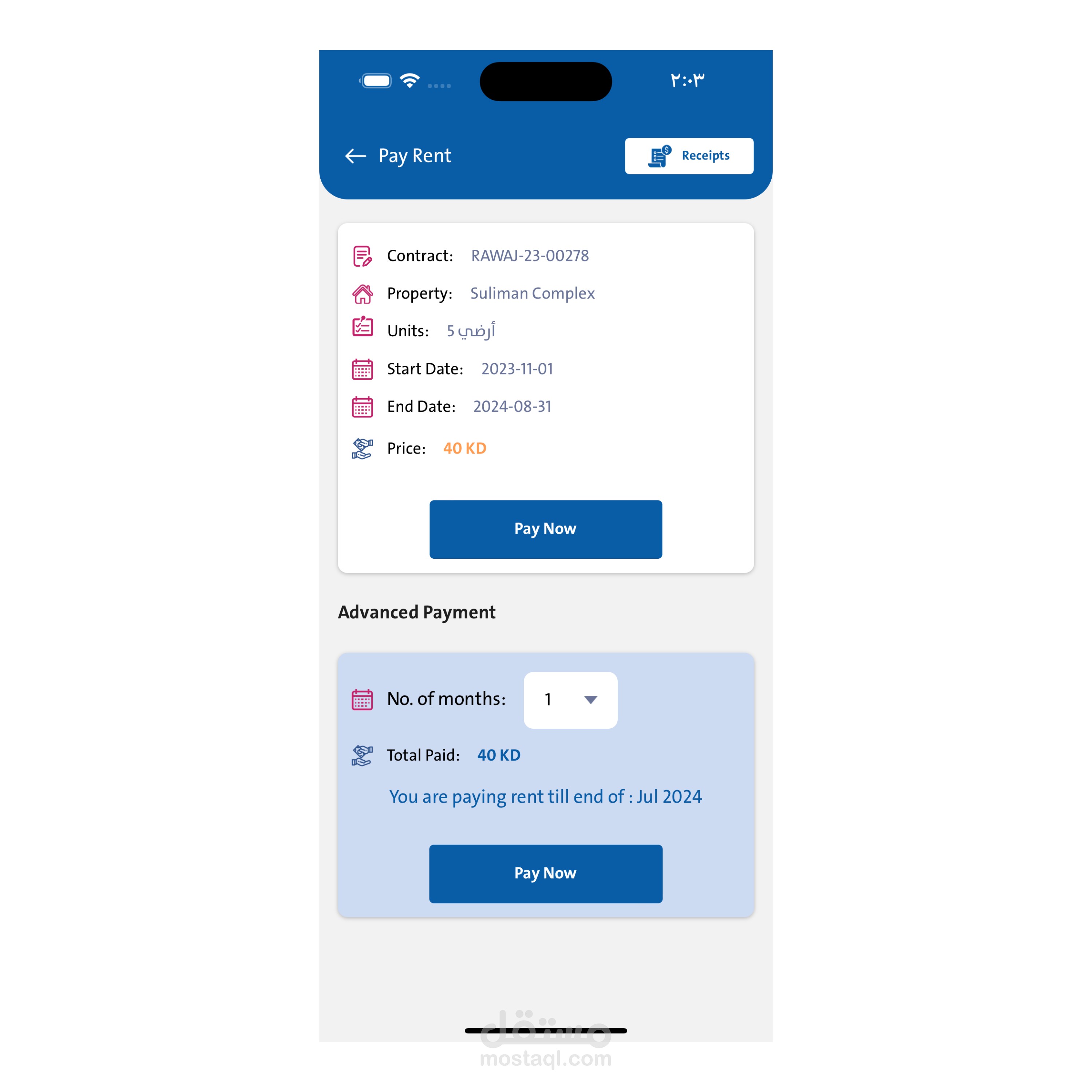 تطبيق موبايل متكامل يهدف إلى تسهيل إدارة العقارات وتقديم تجربة رقمية مميزة للمستخدمين، من خلال منصة موحدة تتيح دفع الإيجارات وطلب الخدمات العقارية بسهولة وسرعة.