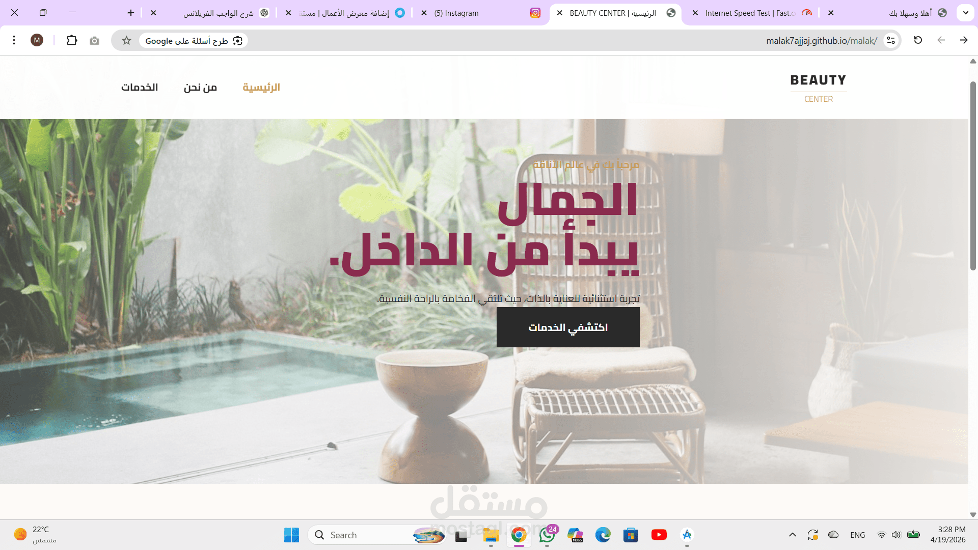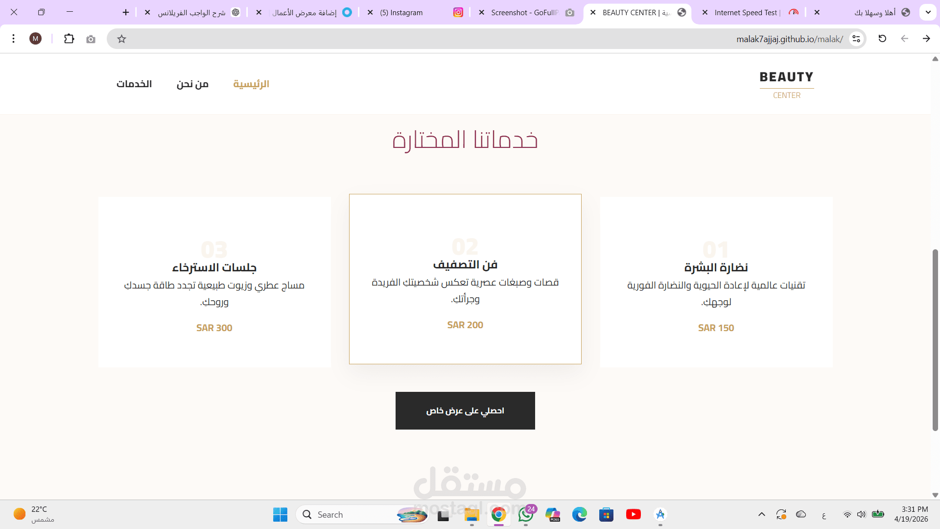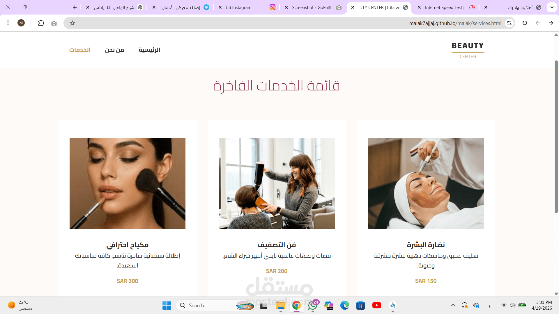 Designed a modern and elegant interface for a beauty center, focusing on providing a relaxing and user-friendly experience. The platform showcases various services including skincare, hair styling, makeup, and spa treatments.
