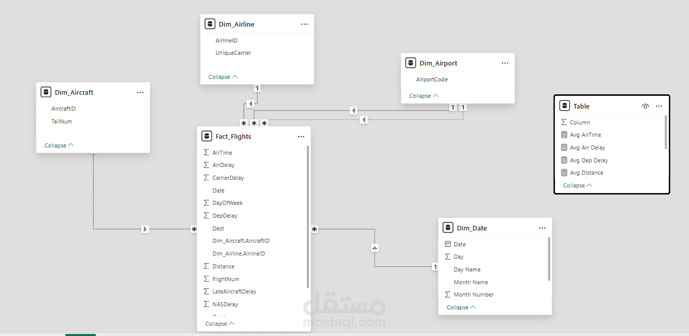 تم تصميم نموذج بيانات باستخدام Star Schema لتحسين الأداء داخل Power BI: