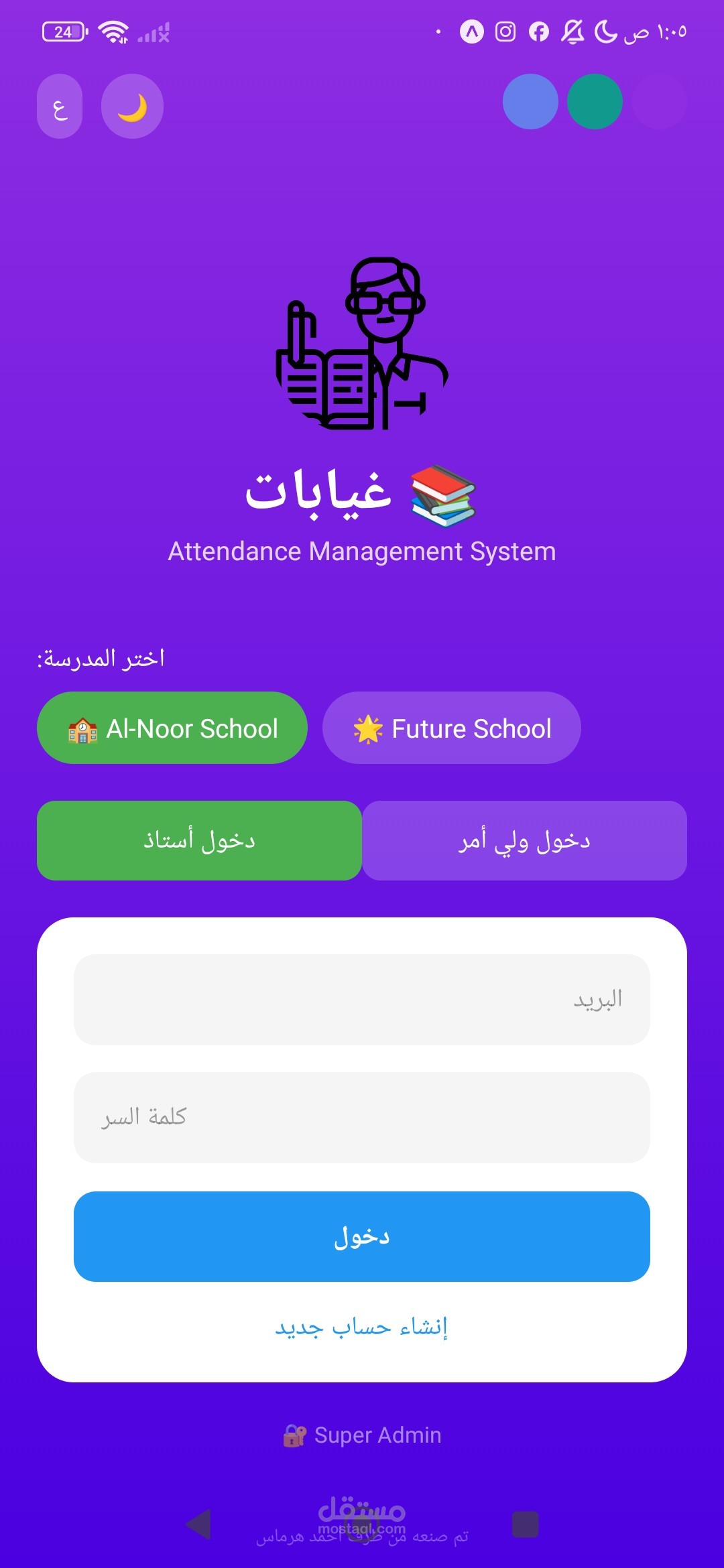 تم تطوير تطبيق متكامل لإدارة الحضور والغياب للمؤسسات التعليمية.
