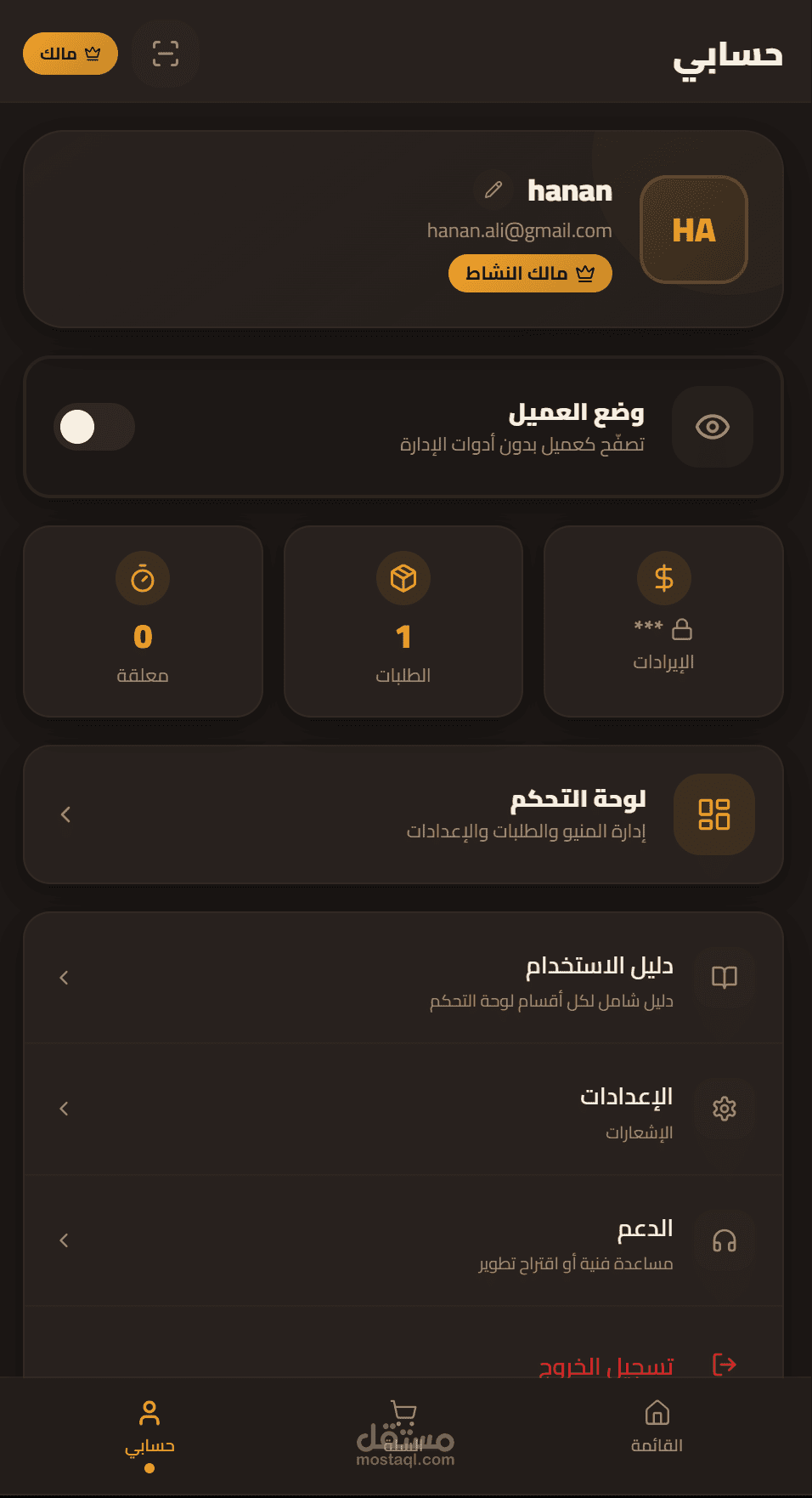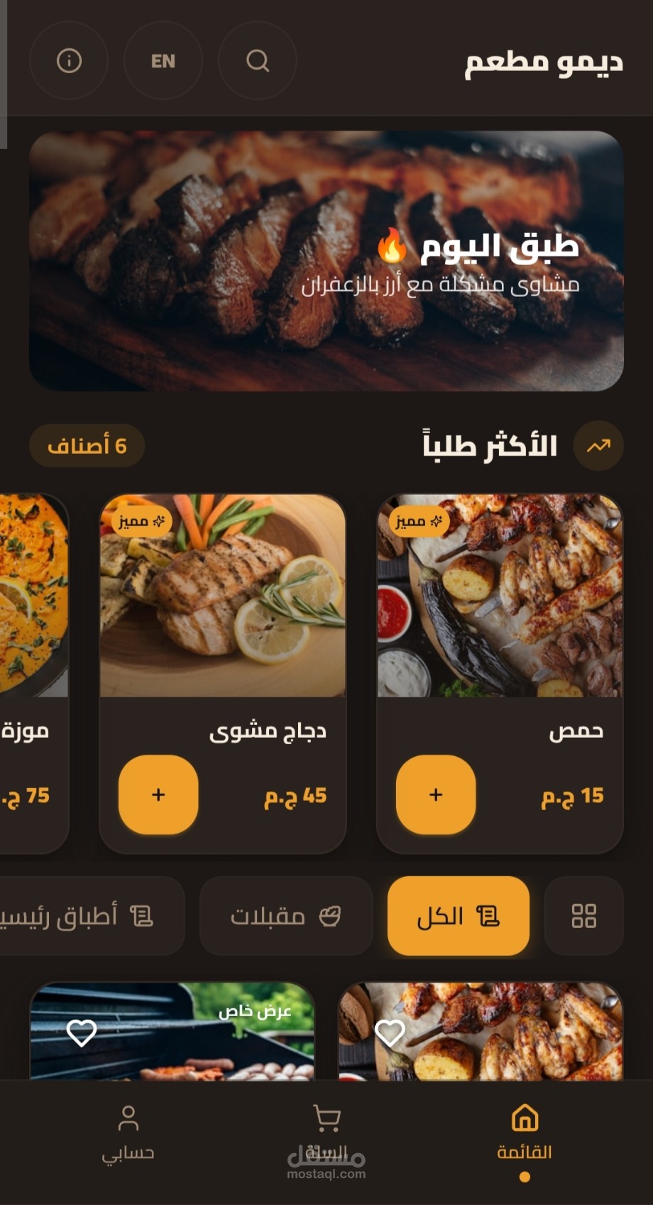 نظام احترافي لإدارة المطاعم يجمع بين المنيو الرقمي عبر QR Code، نظام الطلبات (Dine-in / Takeaway / Delivery / WhatsApp)، ولوحة تحكم متقدمة لإدارة كل العمليات من مكان واحد.