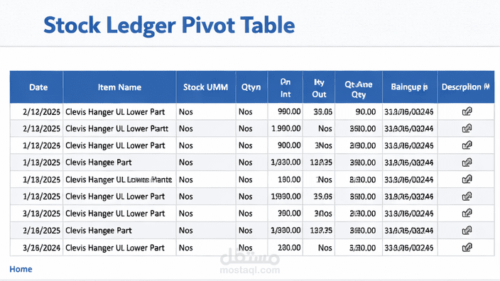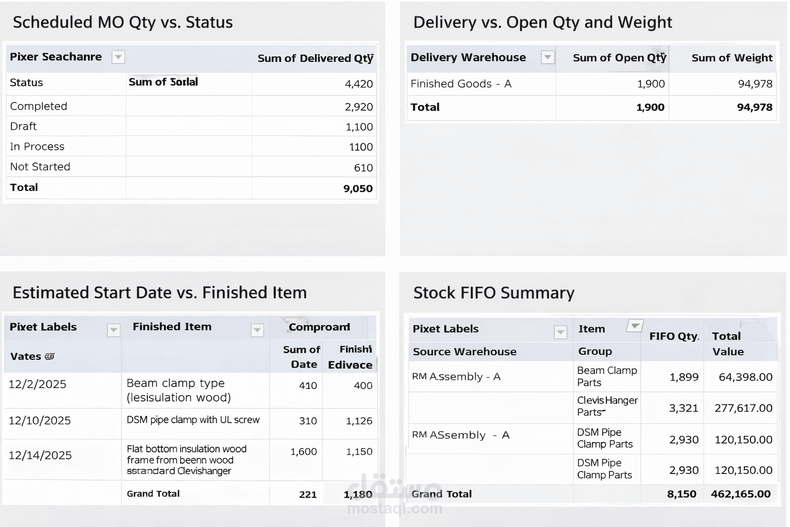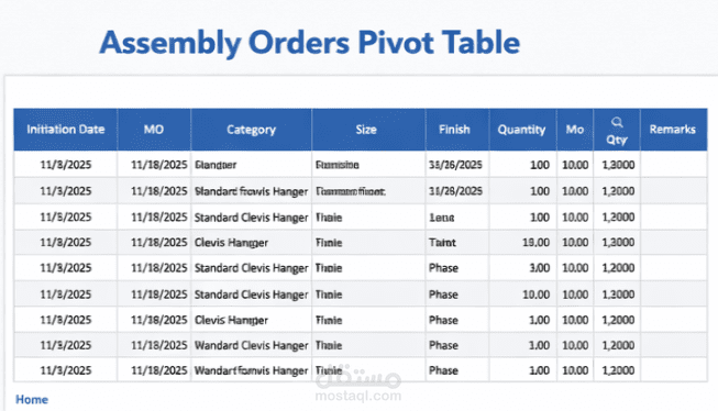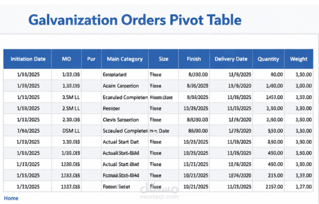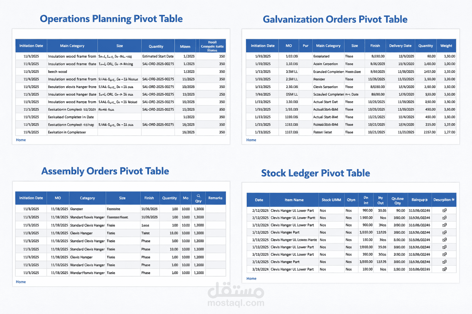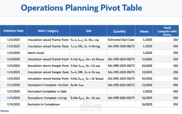 تم تصميم اللوحة باستخدام Pivot Tables في Excel مرتبطة ببيانات فعلية من ERPNext، لتقديم رؤية واضحة واحترافية تساعد في التخطيط والمتابعة وتحسين الكفاءة التشغيلية.
