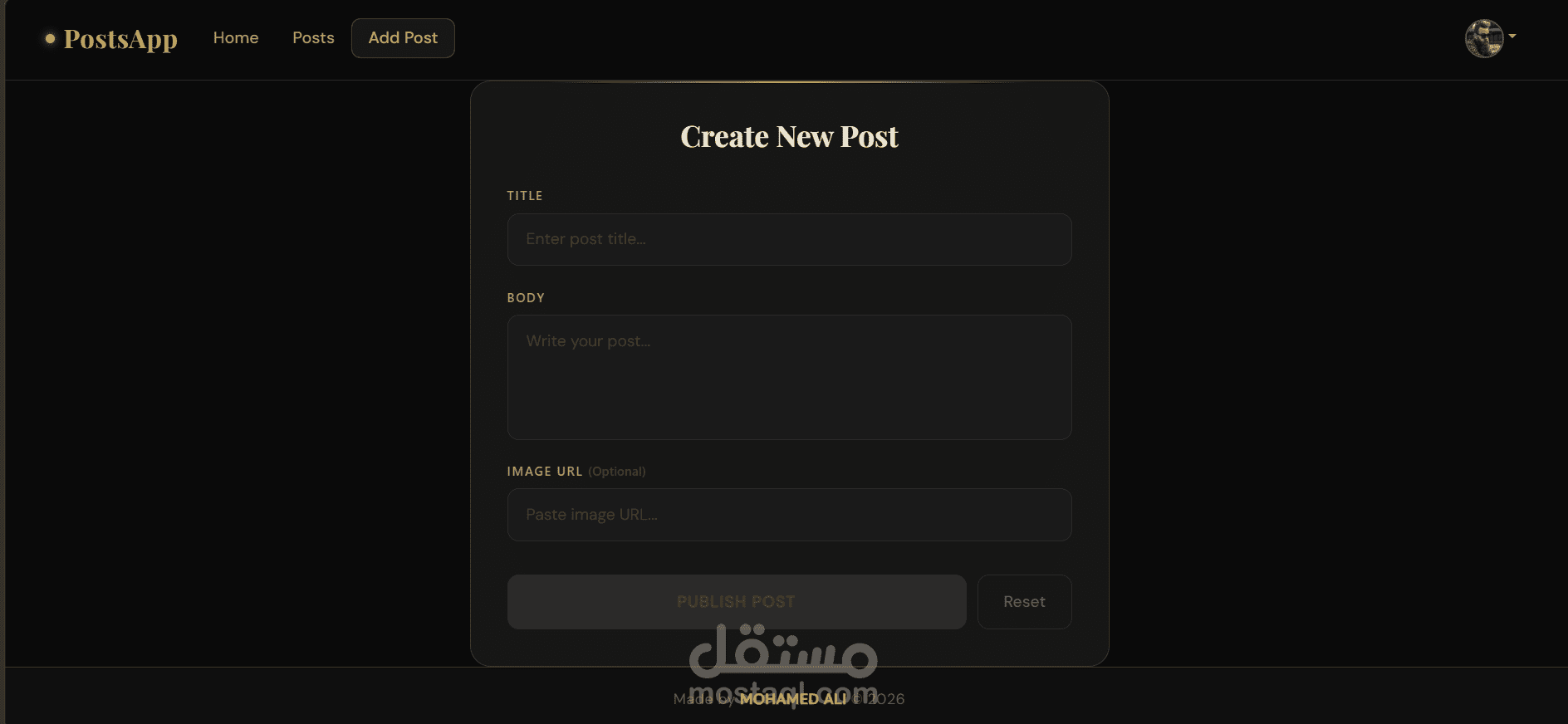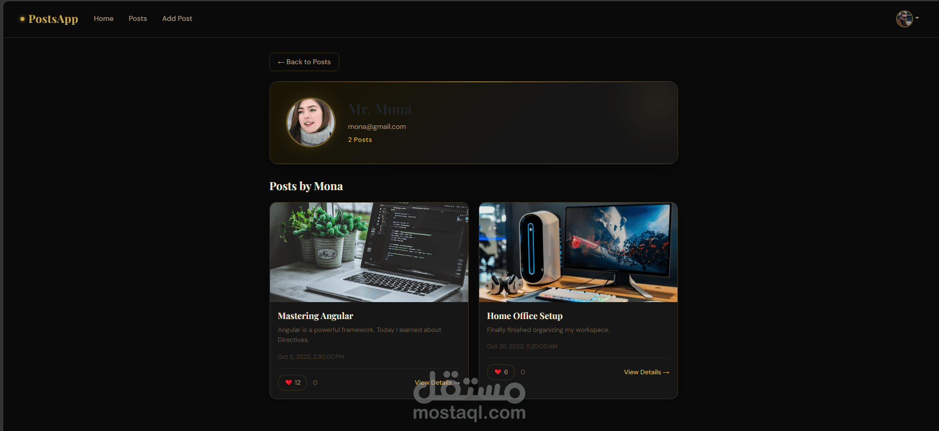 PostsApp is a modern social networking application designed for high-performance content sharing and community interaction. It features a sophisticated "Dark Mode" aesthetic with premium golden accents, focusing on a clean user experience and robust data management.