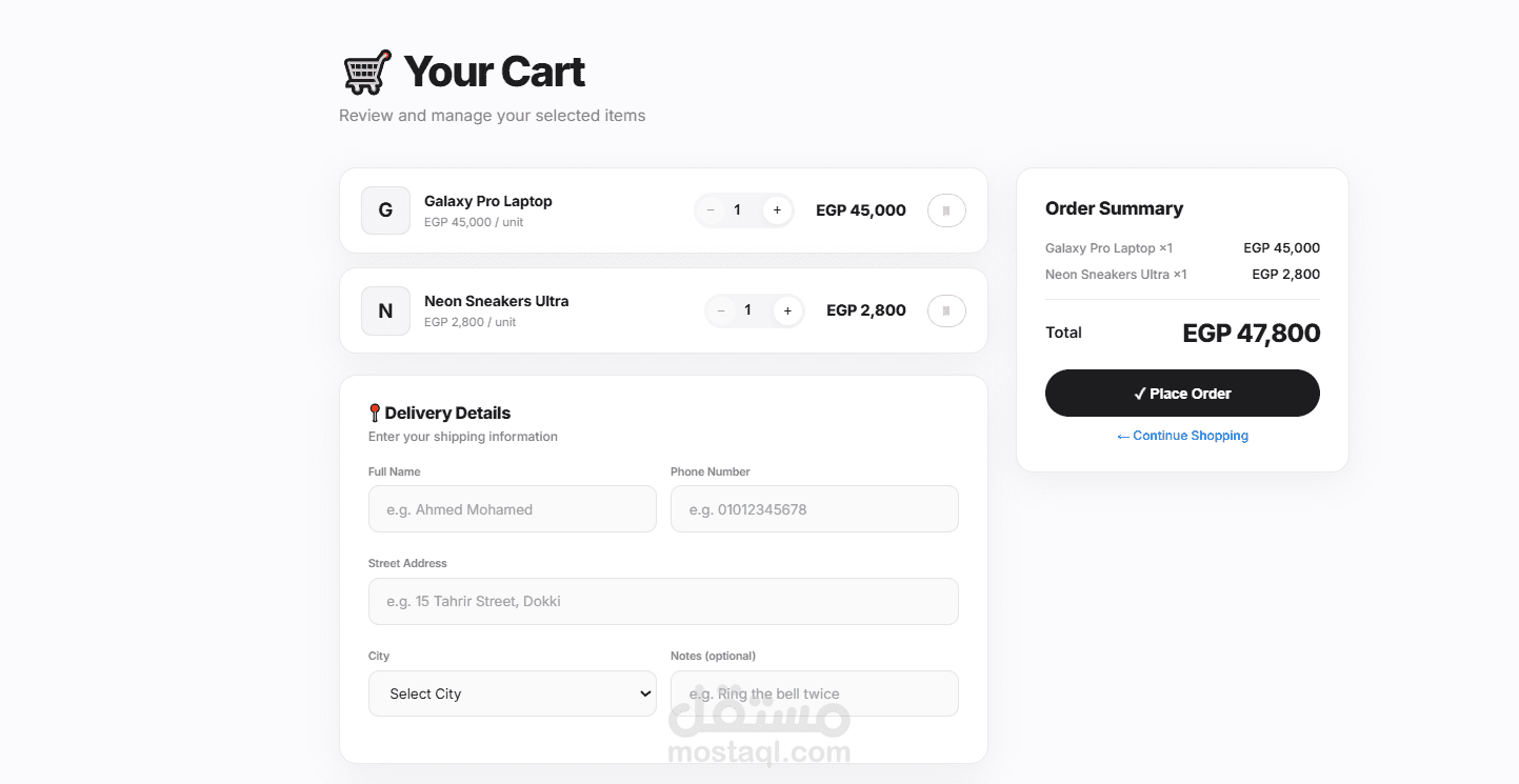 Multi-Step Checkout Flow: A structured, secure, and user-friendly payment and shipping process designed to maximize conversion rates.