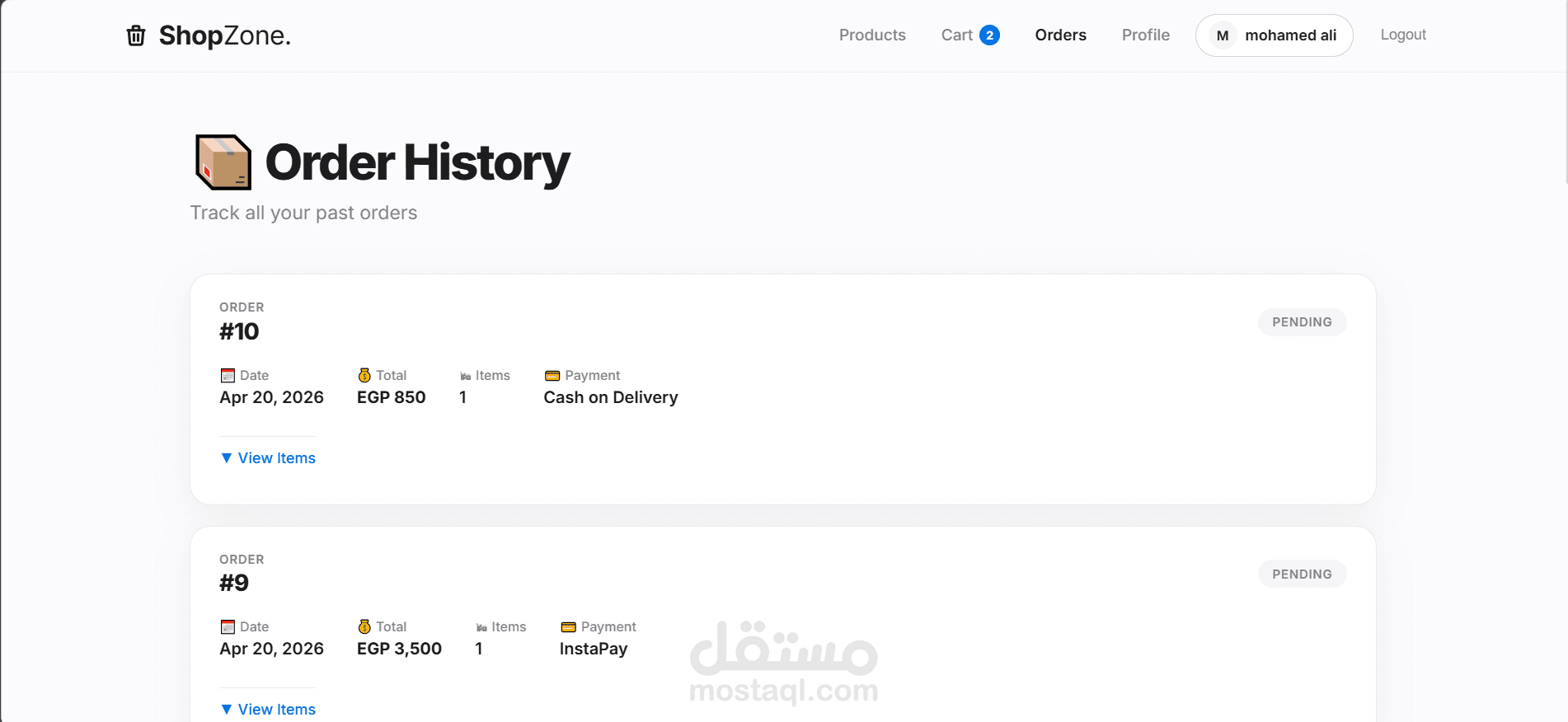User Dashboard & Order History: A dedicated profile area where users can track current orders, review past purchases, and manage personal details.