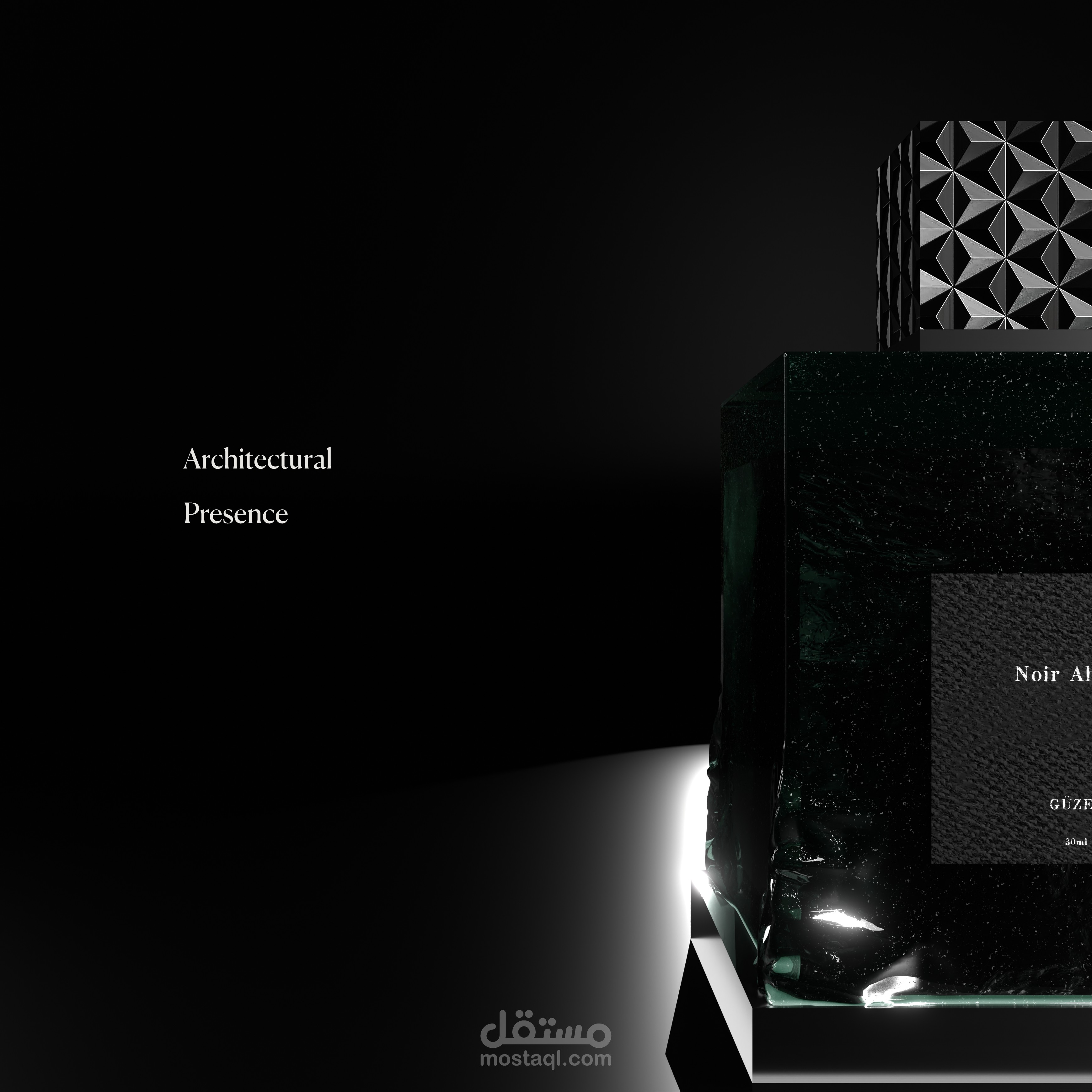 Noir Absolu is a conceptual CGI fragrance advertisement created to explore a darker, more architectural expression of luxury perfume design.