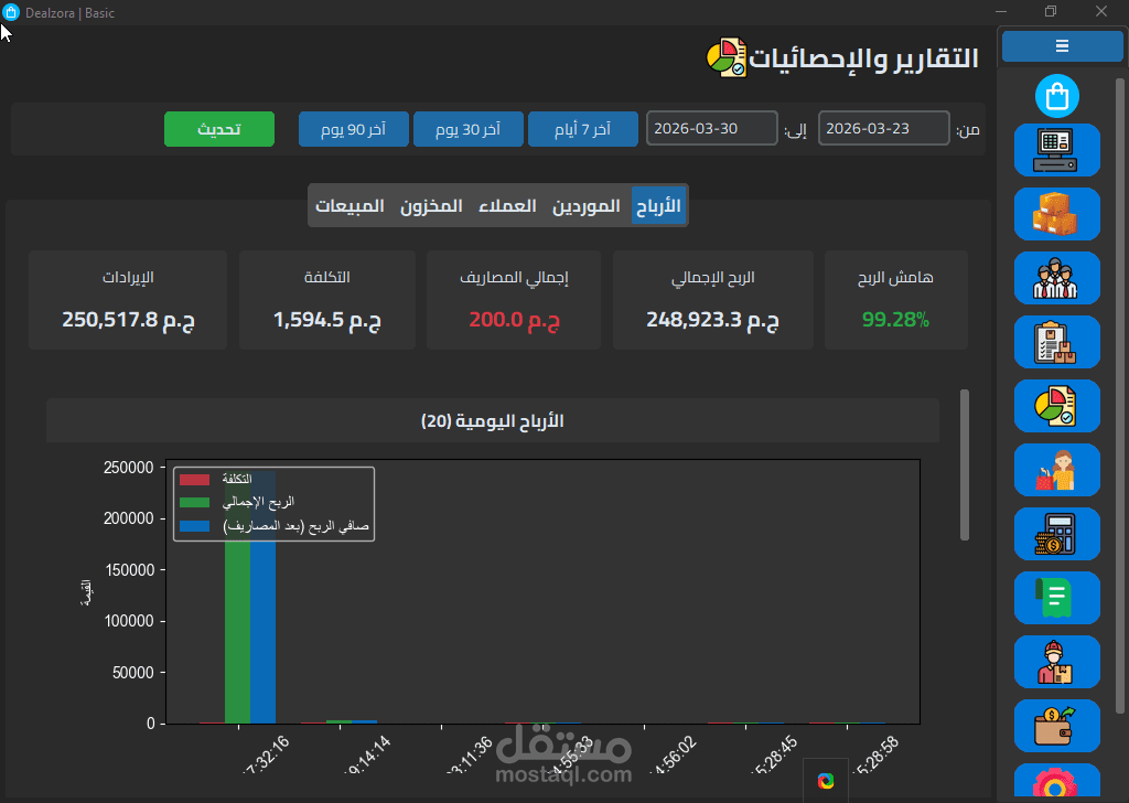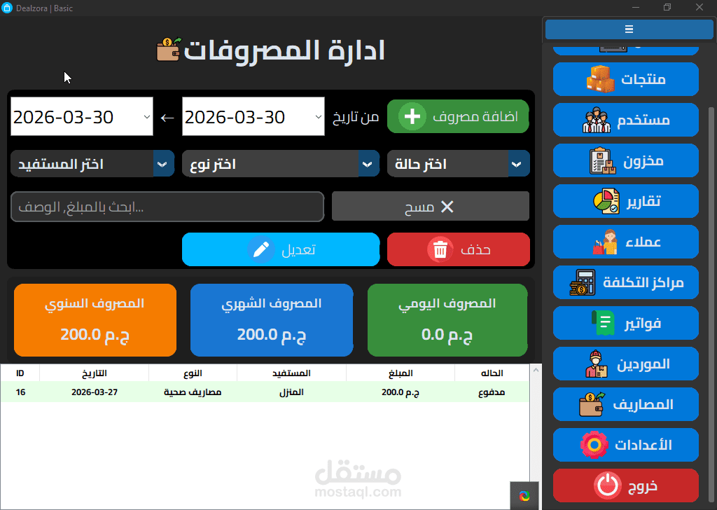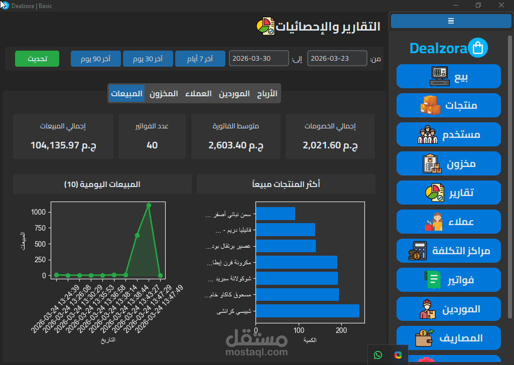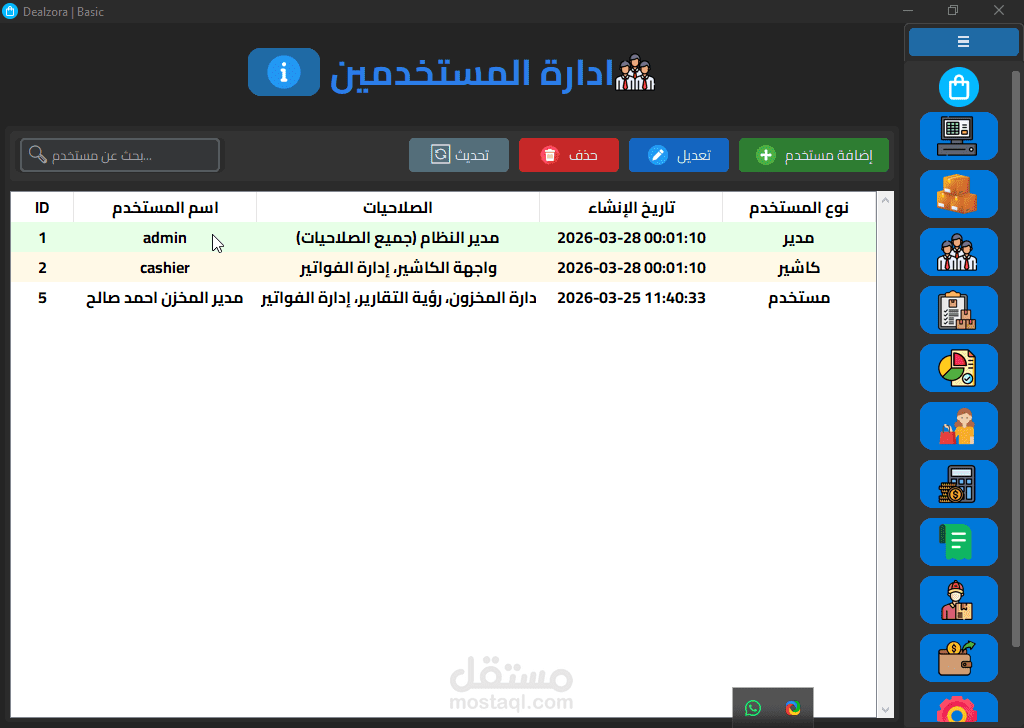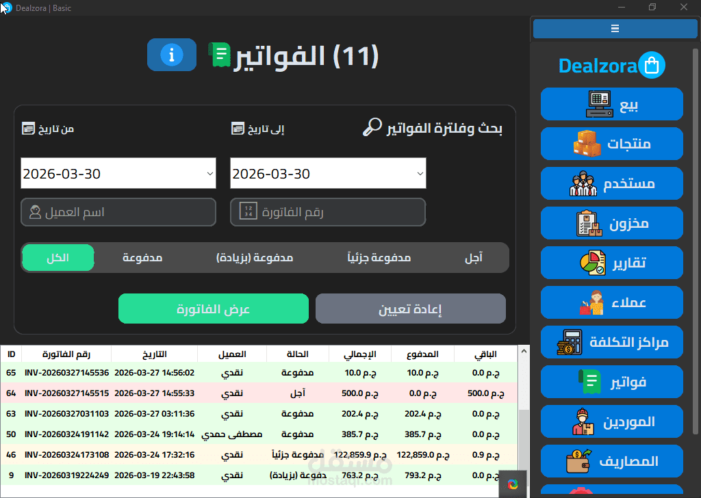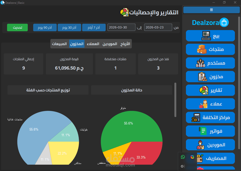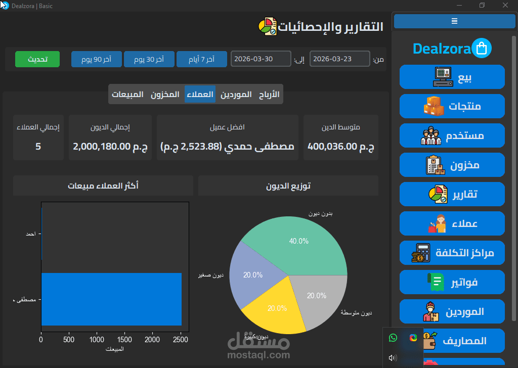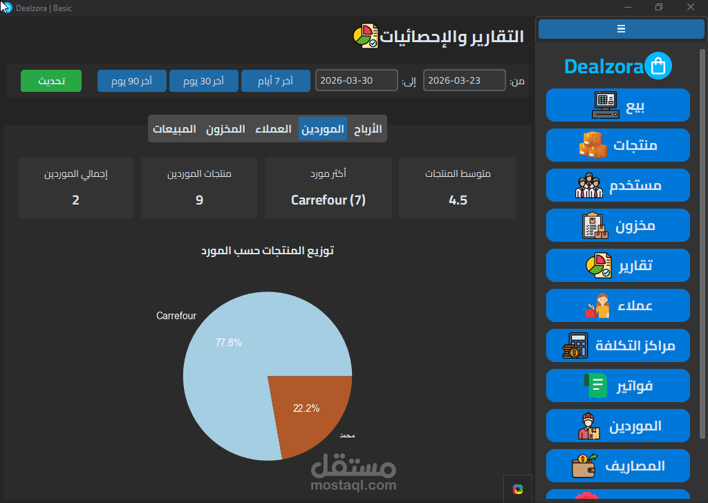 Dealzora هو نظام إدارة أعمال متكامل (ERP) مبني من الصفر بـ Python وSQLite3 مع واجهة مستخدم احترافية تدعم الوضع المظلم والفاتح، وصُمم خصيصاً للشركات التجارية متعددة الفروع.