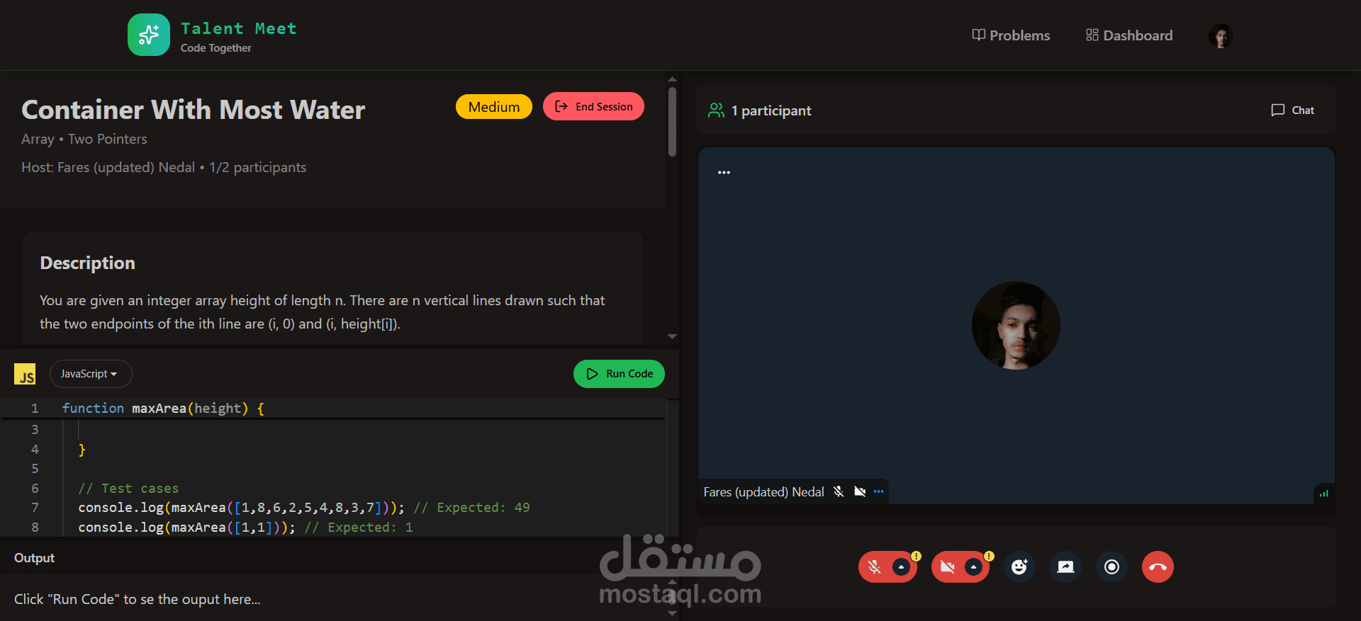 منصة مقابلات تقنية متكاملة (Full-Stack Technical Interview Platform) تم تطويرها لتسهيل عملية التوظيف بين الشركات والمرشحين، من خلال بيئة تفاعلية لإجراء اختبارات برمجية مباشرة.