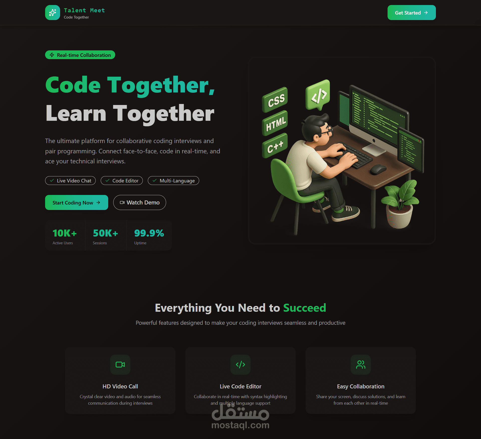 تجربة مستخدم احترافية وسلسة للمقابلات التقنية