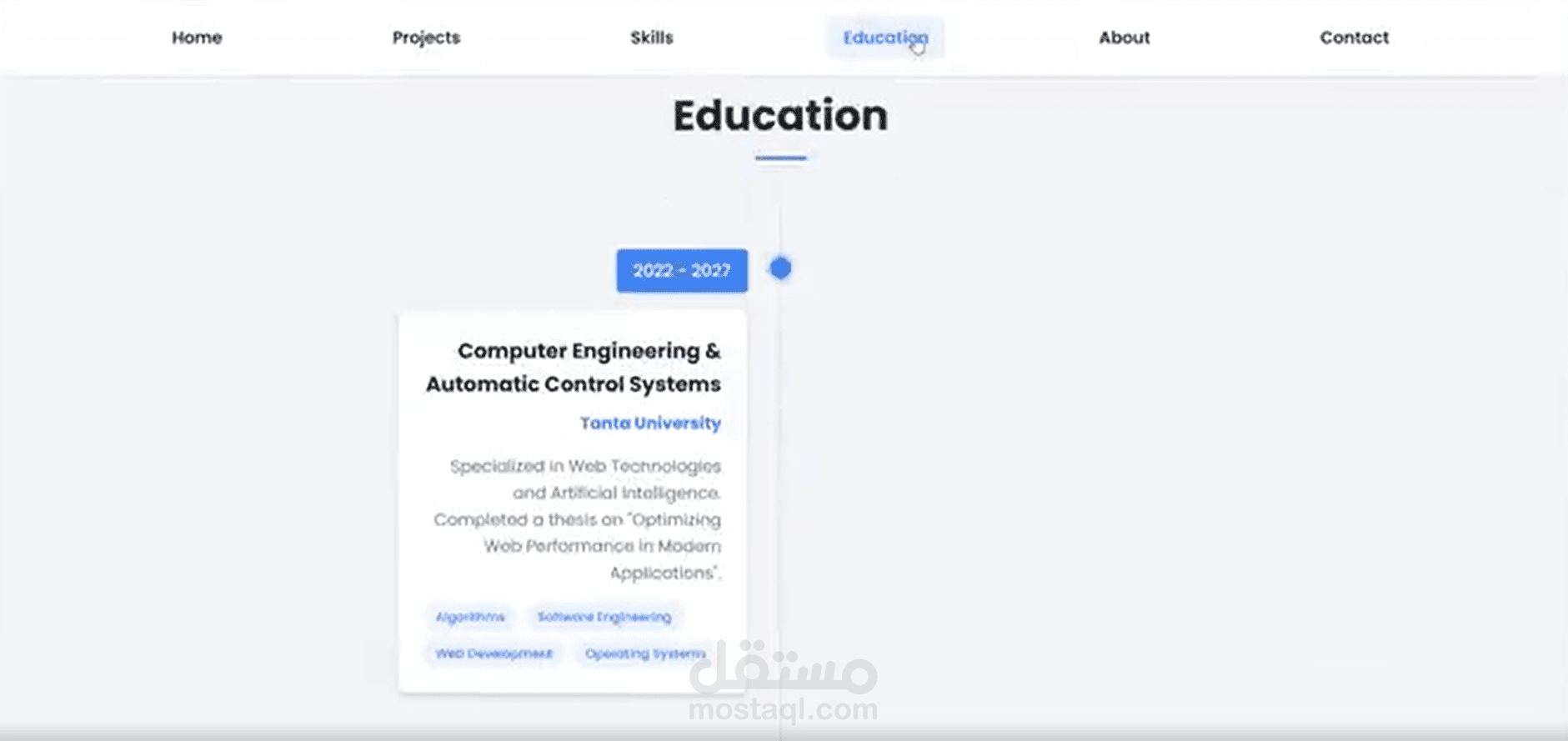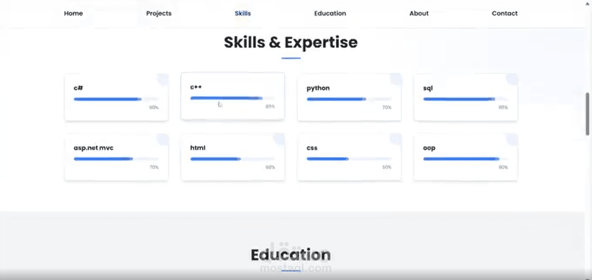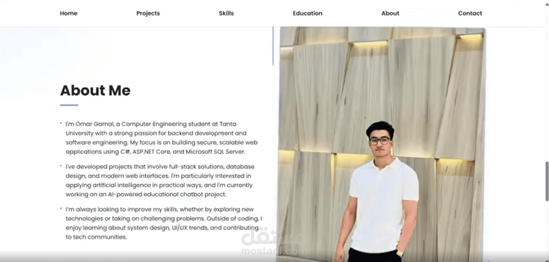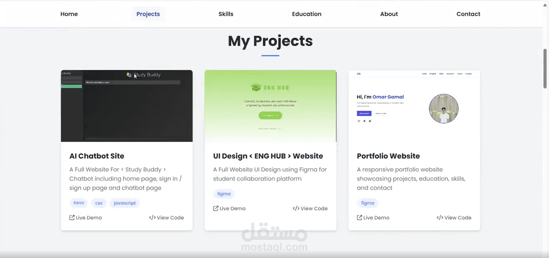يتيح عرض المشاريع والمهارات بشكل احترافي مع بنية منظمة وسهلة التوسّع، مما يضمن أداء جيد وإمكانية تطوير مستقبلية.