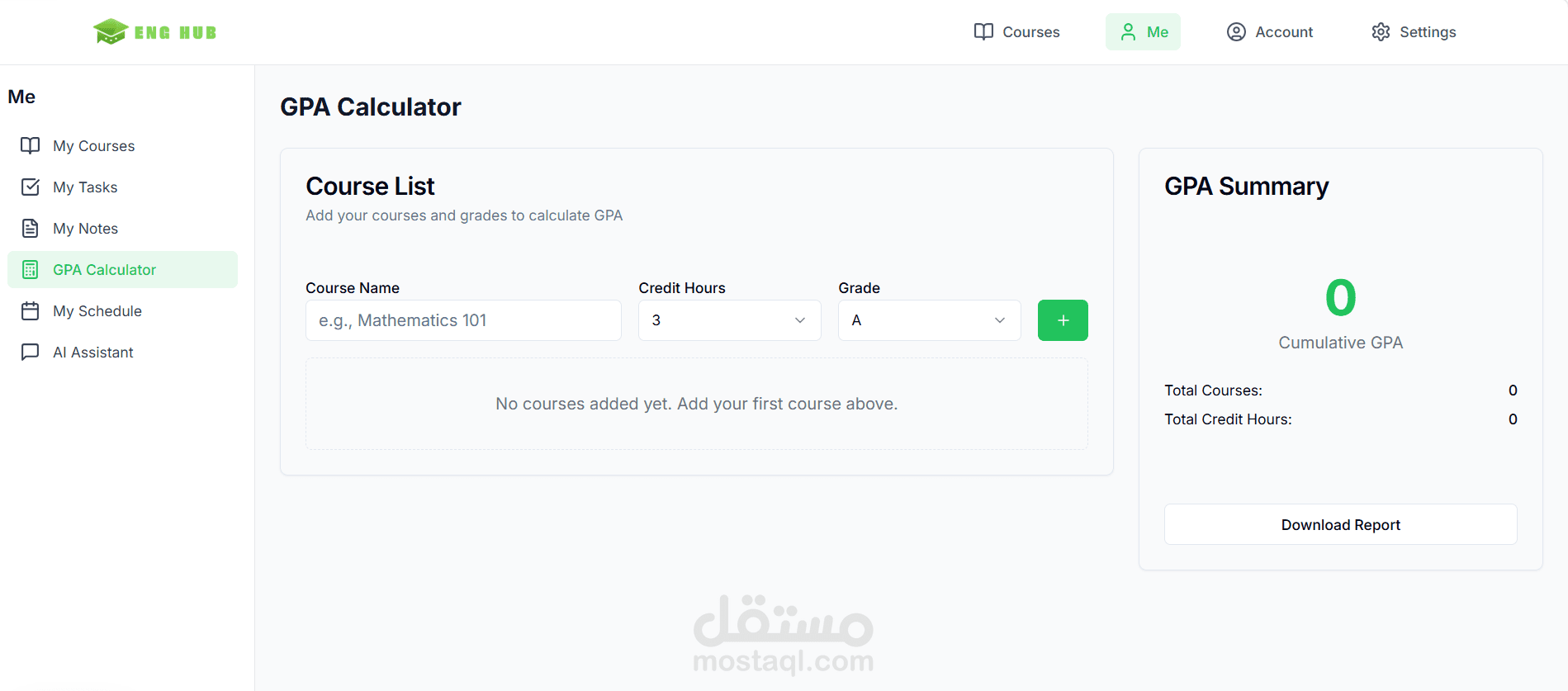 An interactive GPA calculator that takes course names, credit hours, and grades as input and instantly generates a cumulative GPA summary with a downloadable report.