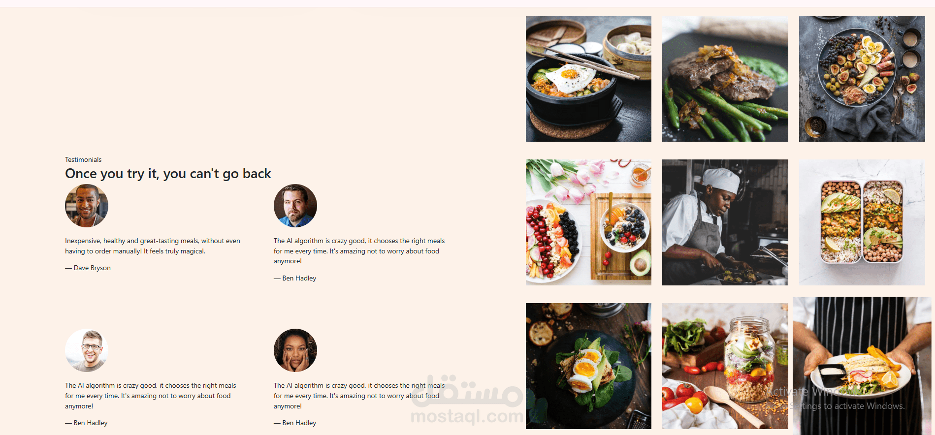 تحويل تصميم احترافي من Figma إلى صفحة هبوط (Landing Page) متكاملة وعصرية لخدمة اشتراكات وجبات صحية. المشروع بيركز على تقديم تجربة مستخدم (UX) استثنائية من خلال واجهة بصرية جذابة تدفع المستخدم لاتخاذ قرار الاشتراك بسهولة.