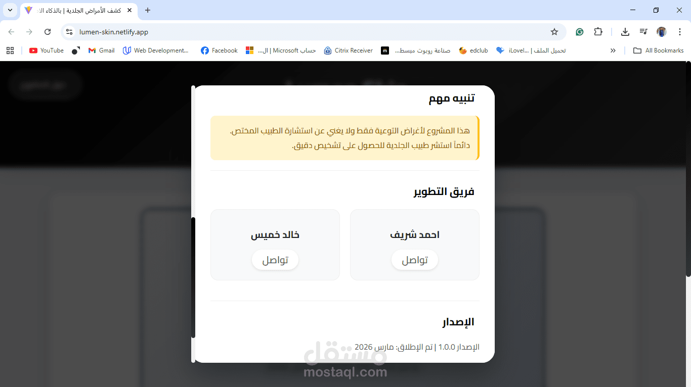 Footer يحتوي على روابط التواصل ووسائل التواصل الاجتماعي
