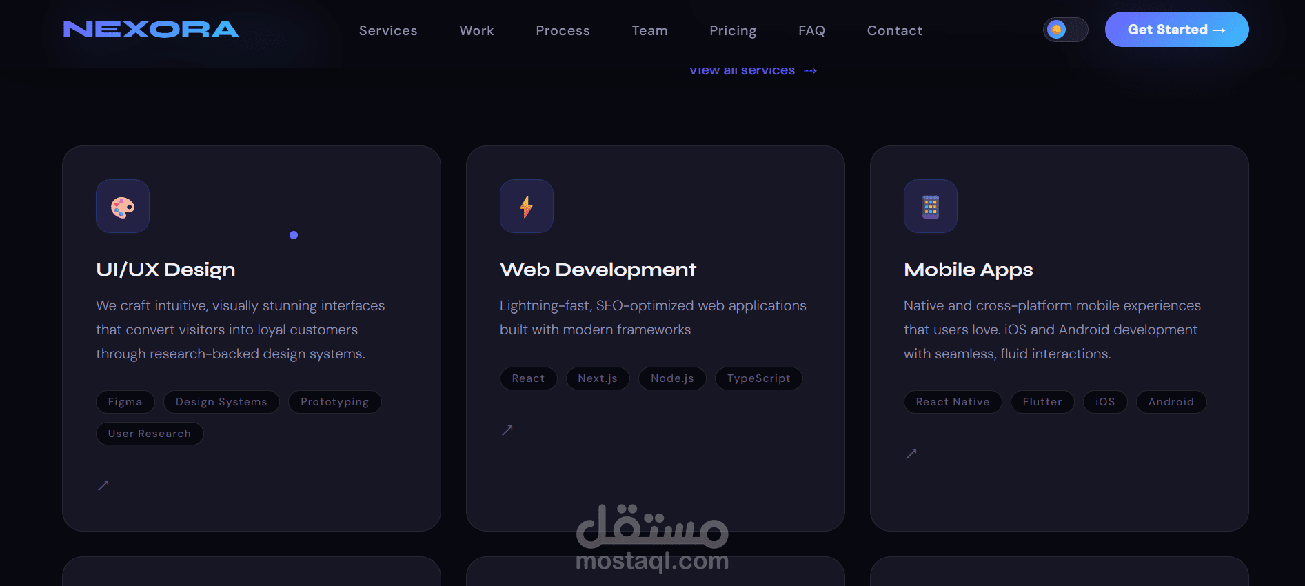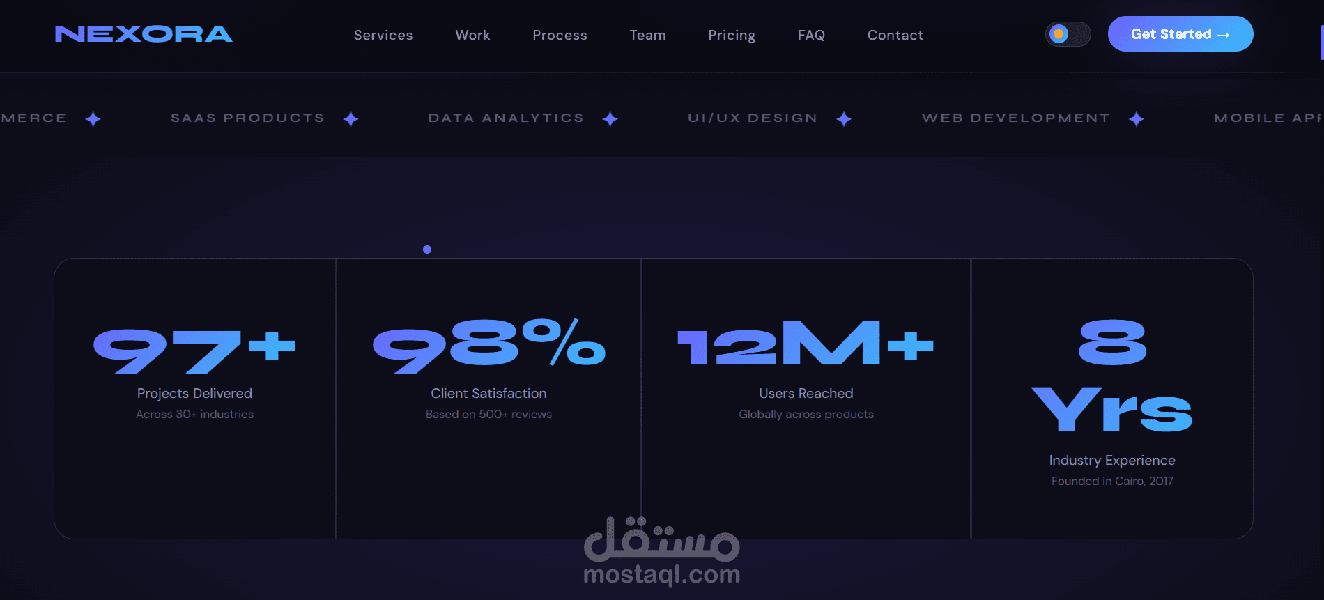 الموقع هو Landing Page + Corporate Website لشركة بتقدم خدمات رقمية (تصميم، برمجة، AI، تسويق).