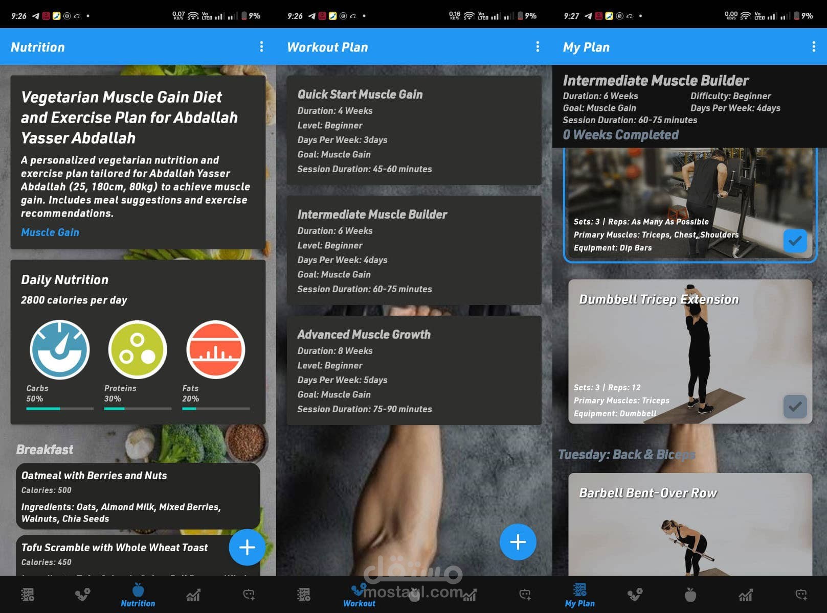 خطط مخصصة: عرض خطط تمارين مصممة بناءً على الأهداف، مستوى اللياقة، والتفضيلات الشخصية.
