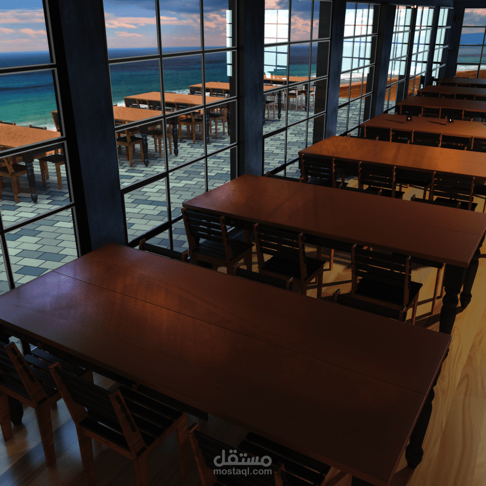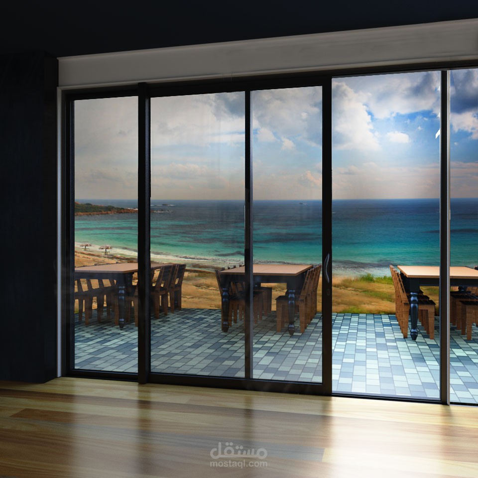 مطعم مطل ع ساحل البحر الابيض المتوسط بمدينة الخمس بليبيا
