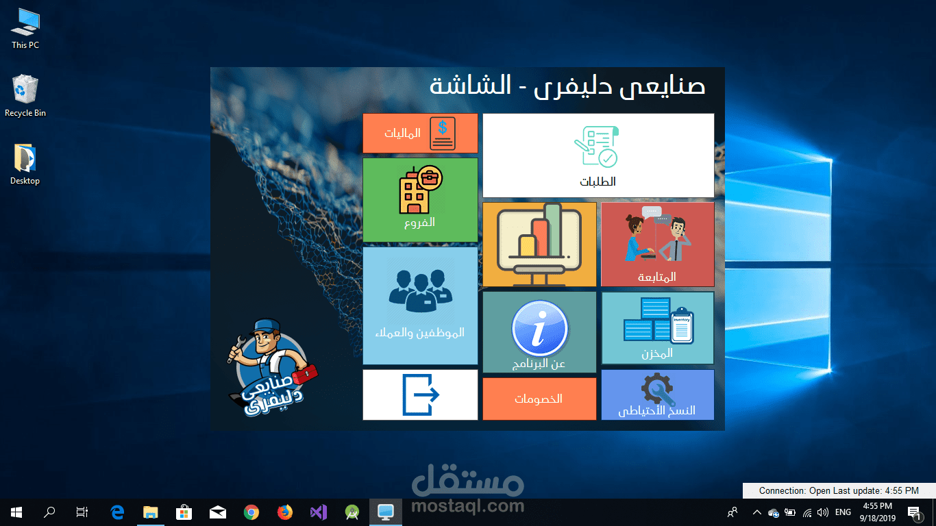 برنامج يقوم بأدارة مكتب خاص بالصيانات المنزلية عن طريق توفير فنيين من ذوى الخبرة للعملاء حيث يتضمن :